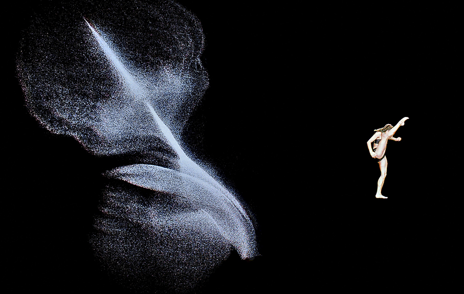 而透過動態捕捉技術,所搜集到的舞蹈動作數據被運用在整個作品中,驅動了不同物件的運動方式。所以,「舞蹈無處不在,即便你所看到的不是一個具體的身體,它的動線亦是來自舞蹈。」