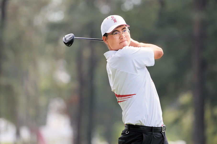 香港文匯報訊 昨日(15日)十五運會高球賽第三輪賽事,港將沈弘毅表現亮眼,打出一球「老鷹」和五球「小鳥」,協助港隊男子團體賽以三輪總成績低標準桿25桿的605桿,保持並列第二。