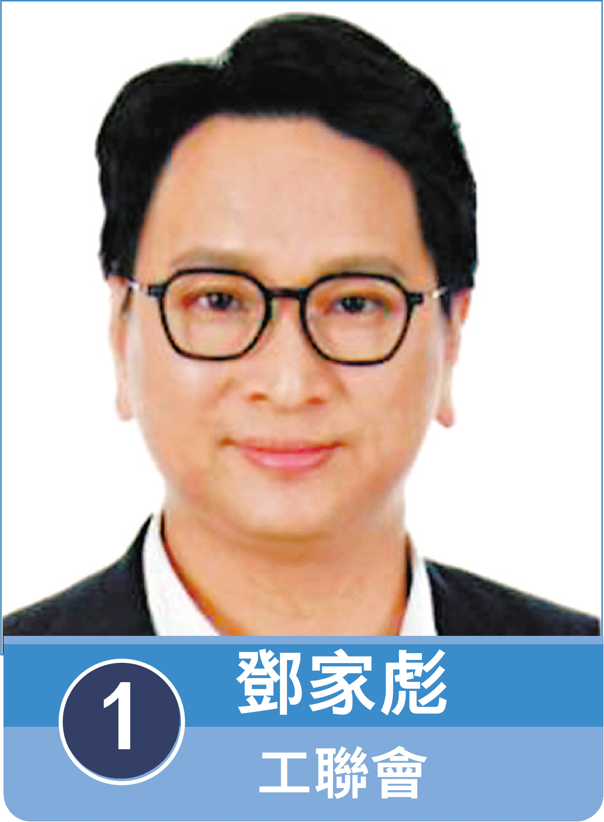 1號候選人、現任立法會議員鄧家彪以「九東彪記 拚搏為你」為口號,冀爭取連任,承諾將繼續以六大方向推動政策改革,為市民爭取更公平、更有保障的生活。