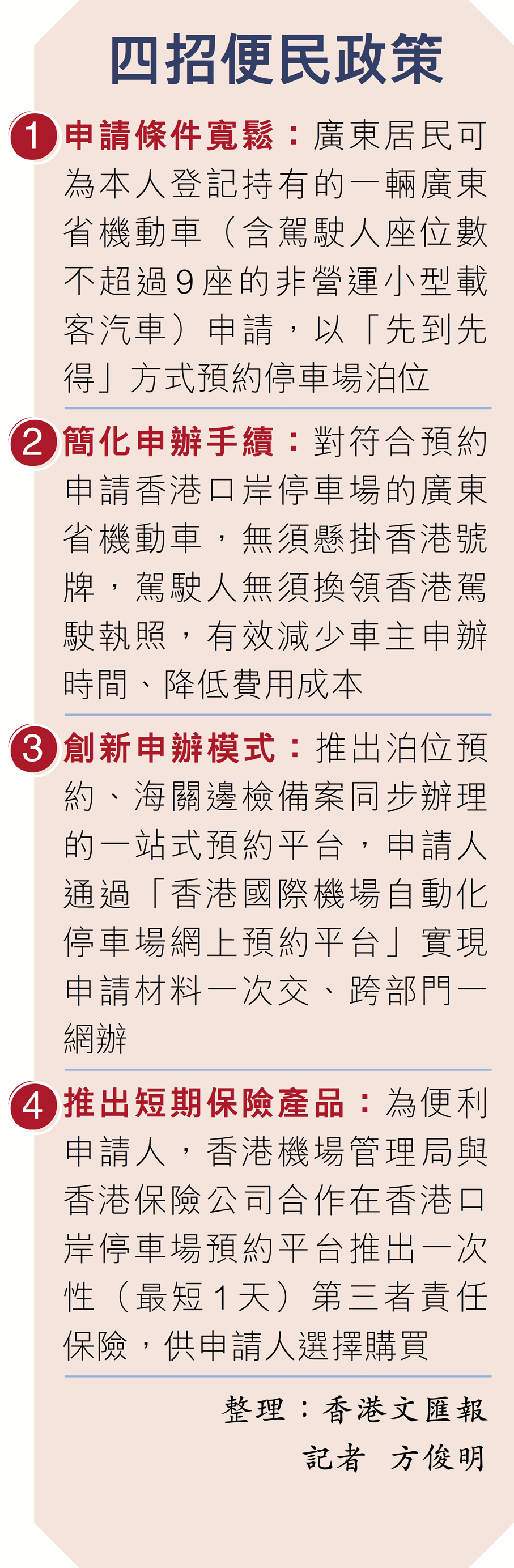 中山旅客陳先生得悉可駕車到香港國際機場轉機後,訂了香港往曼谷的行程,「能成為粵車南下首批車主,心情非常激動。」他指整體體驗便利,可在微信小程序完成預約,十分方便,停車4天亦只要百多港元,「即使日後優惠期完結,若是短途出行,考慮到性價比和便利性,還是會選擇這裏。」他並透露,不少內地車主熱烈討論粵車南下政策,但有深圳車主因暫未符合資格感遺憾,希望計劃盡快擴展至更多城市。