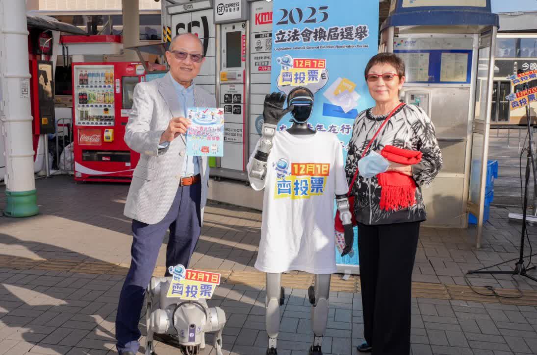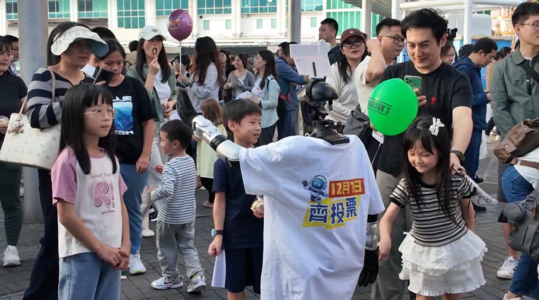身穿12月7日齊投票主題特色衣服、頭戴齊投票髮箍的機器人與機器狗,成為活動亮點。它們隨著音樂節奏靈活舞動,並與市民積極互動,吸引大批群眾圍觀。不少市民拿起手機拍照留念,現場氣氛熱烈。這場表演不僅增添濃厚科技氛圍,更藉此傳遞「12月7日立法會選舉投票」重要訊息,鼓勵市民積極參與立法會選舉,投下神聖一票。
