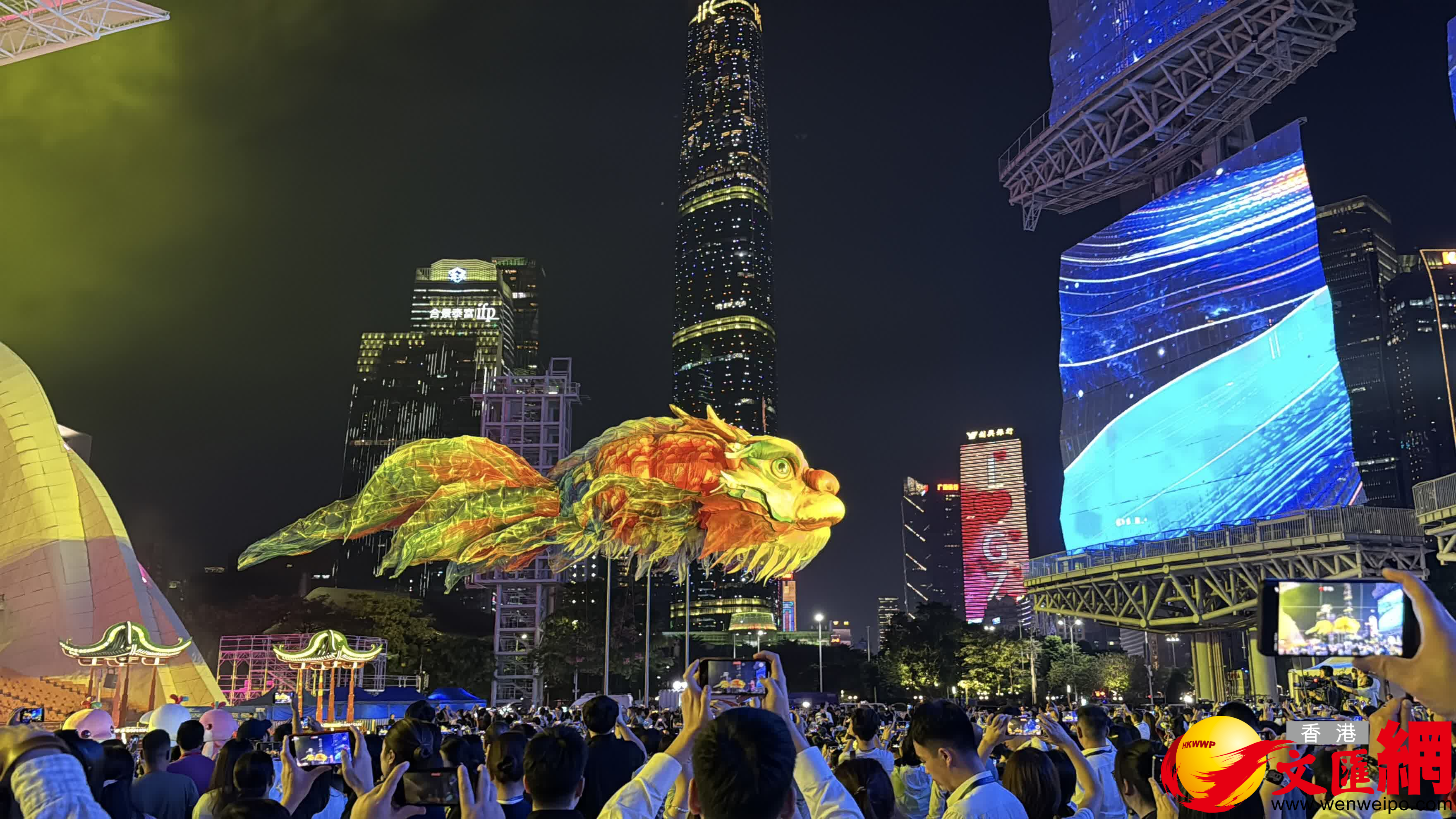 最讓人驚喜的是,十五運會開幕式上,那尾凌空遊弋的巨型鰲魚「遊」到了燈光節現場,並在水舞台上空遊走。「鰲魚」身披金光,倒映在水中如夢如幻,與江對岸的廣州塔互相映襯,讓現場觀眾紛紛驚呼「太美了。」廣州市民梁婷婷說,在電視上看開幕式後就一直對「鰲魚」心心念念,沒想到現場觀看感覺更加震撼、更加夢幻,「希望有一個固定展示的地方,讓更多人感受嶺南文化的美。」暫時還沒預約到燈光節門票、只能在遠處眺望的茂名遊客林小姐更是許願說,希望明年春節來一次「鰲魚」廣東大巡遊。
