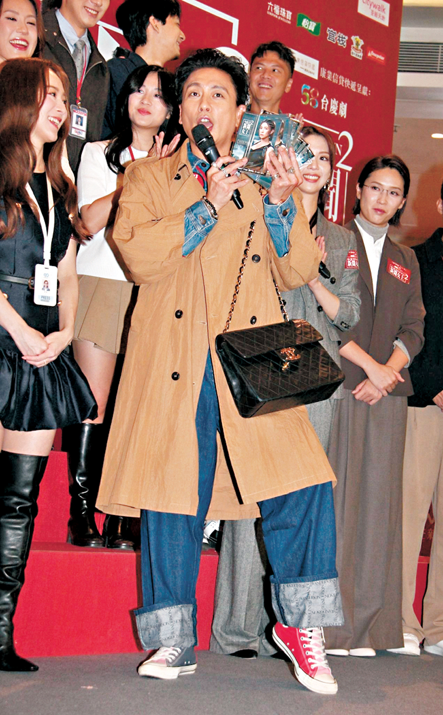 現場由高海寧做代表宣布劇集在內地多個話題榜獲得佳績,她笑稱曾懷疑Bosco也是劇集的現實營銷部,幸好角色是由對方飾演,相信若由其他演員演出,一早就被觀眾喊打了。Bosco就多謝各大廣告商支持,認為《新聞女王》系列是一個大IP,會有很多廣告商爭落廣告。提到他在劇中不時喝紙包牛奶,植入式廣告太突兀,Bosco說:「我就覺得OK的,飲奶時樣衰,又幫助到我入戲,現在出街都未被人打,因為我通常先問街坊自己係咪好衰。」Bosco稱角色的成功要歸功於造型,今次試造型是他演戲以來最多的一次,初時由於囂張感不足,他出動私伙古董手袋,甚至連襪子也要跟西裝配對,一絲不苟。問到Bosco有沒有信心衝擊今年視帝,他表示每一年都有人問他有無信心,他也一樣回應沒有多想,對於劇集和角色受歡迎已經很開心,獎項只是錦上添花。