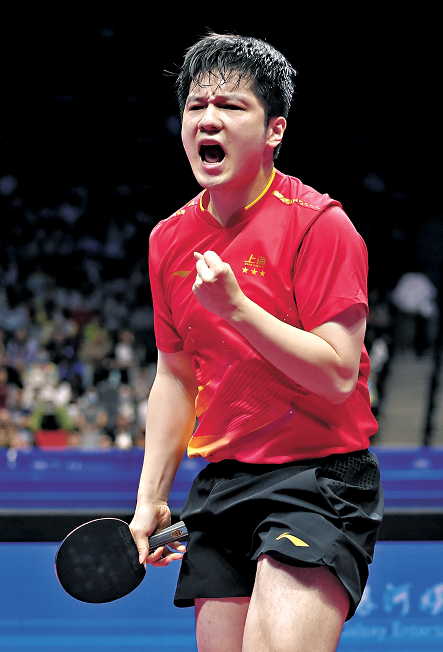 香港文匯報訊(記者 楊浩然)全運會乒乓球項目男單決賽於昨日舉行,結果上海隊代表樊振東以局數4:1,戰勝海南隊代表林詩棟,順利衛冕男單金牌。