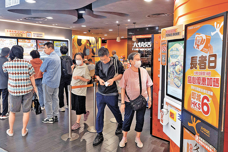 另有餐廳提供全單減5元的優惠,但有長者直言部分店舖提供的優惠力度不足。有長者夫婦昨日除乘搭山頂纜車觀光外,亦計劃免費體驗中環的香港摩天輪,認為若商戶再提高優惠幅度並增加長者免費的日數,將吸引更多長者外出消費。