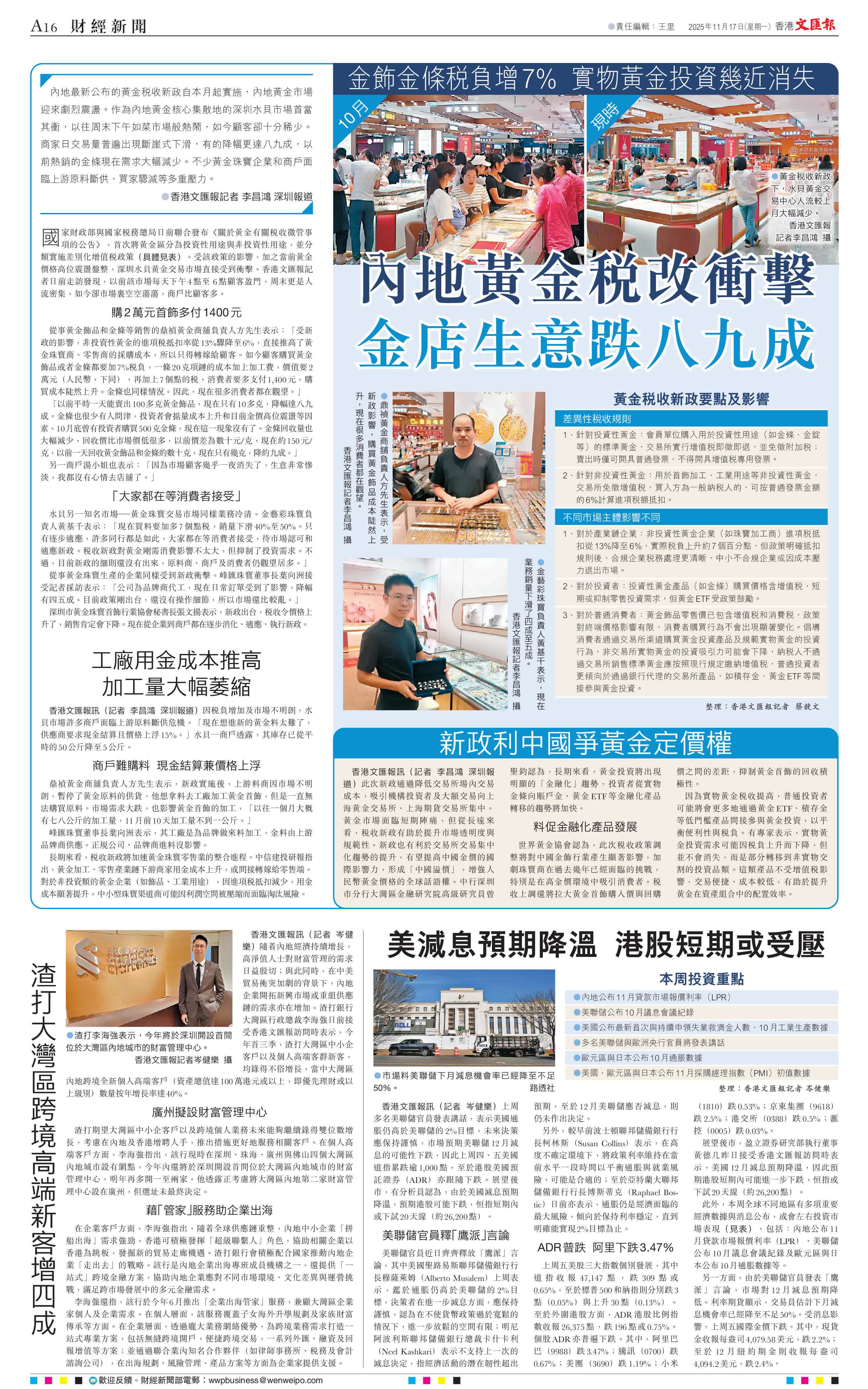 (香港文匯報記者 李昌鴻 深圳報道)內地最新公布的黃金稅收新政自本月起實施,內地黃金市場迎來劇烈震盪。作為內地黃金核心集散地的深圳水貝市場首當其衝,以往周末下午如菜市場般熱鬧,如今顧客卻十分稀少。商家日交易量普遍出現斷崖式下滑,有的降幅更達八九成,以前熱銷的金條現在需求大幅減少。不少黃金珠寶企業和商戶面臨上游原料斷供、買家驟減等多重壓力。
