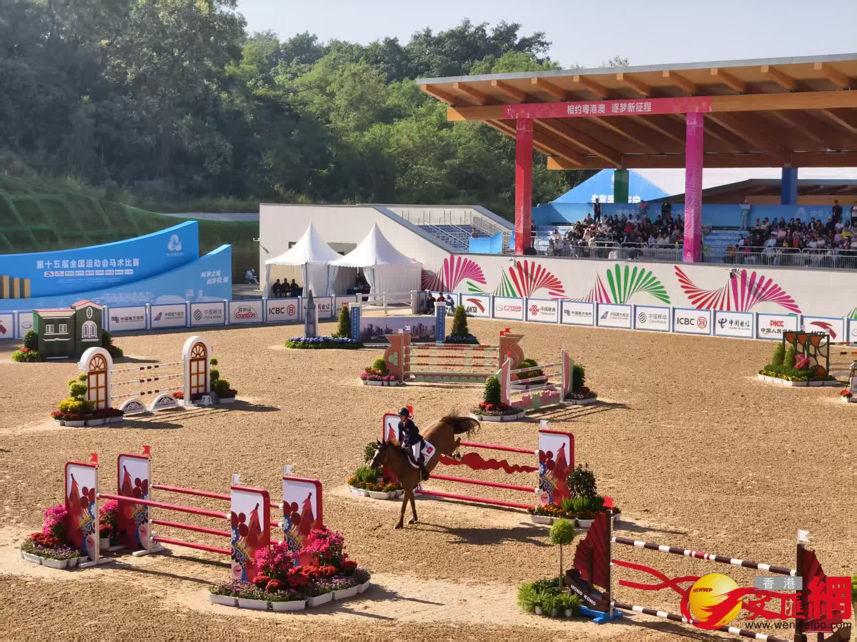 (香港文匯網記者 李薇、胡永愛)十五運會馬術項目場地障礙團體賽決賽(個人資格賽)第一輪比賽中,港隊熱門選手賴楨敏以8-72.90順利完成比賽。賴楨敏是本輪團體賽中第4位出場的選手,除了林立信被淘汰外,剩下三位均勝利完成比賽,根據規則,港隊進入了今日下午舉行的場地障礙團體賽決賽第二輪之中。