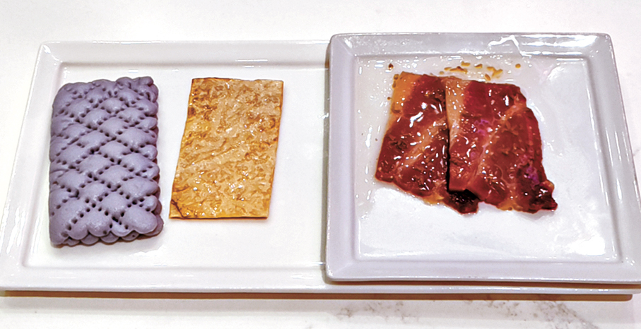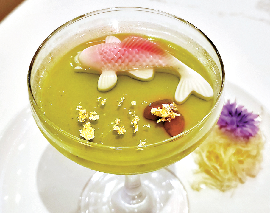 全新菜單中的八道「廚頌」菜式,是吳師傅與其團隊精心鑽研的廚師推介佳餚。其中,浙江名菜「紫圖蜜汁火方」是餐廳最受歡迎的菜式之一,其獨特的菱格圖案更成為這道菜的標誌。吳師傅特別在這道傳統菜式上作出變奏,將原本雪白的饅頭加入紫薯汁,再配以香氣濃郁的雲南宣威火腿、本地生產的蜜糖與桂花,以及即叫即烘的香脆腐皮一同品嘗,成就一道結合傳統與創新的精緻佳餚。