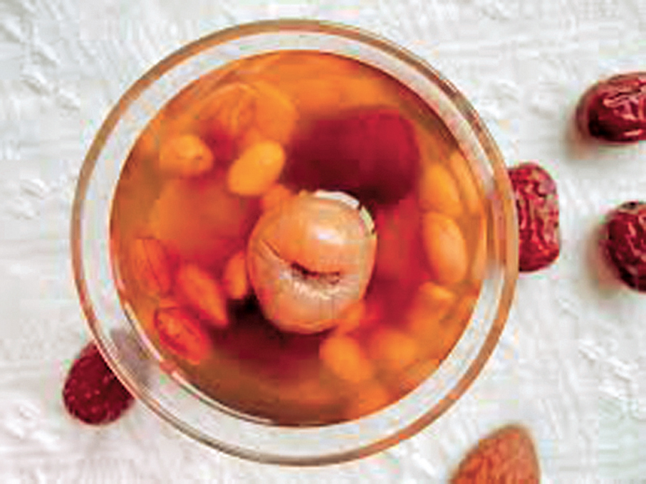 材料:桂圓15克、紅棗5枚、黨參15克、茯神10克、雞肉適量。