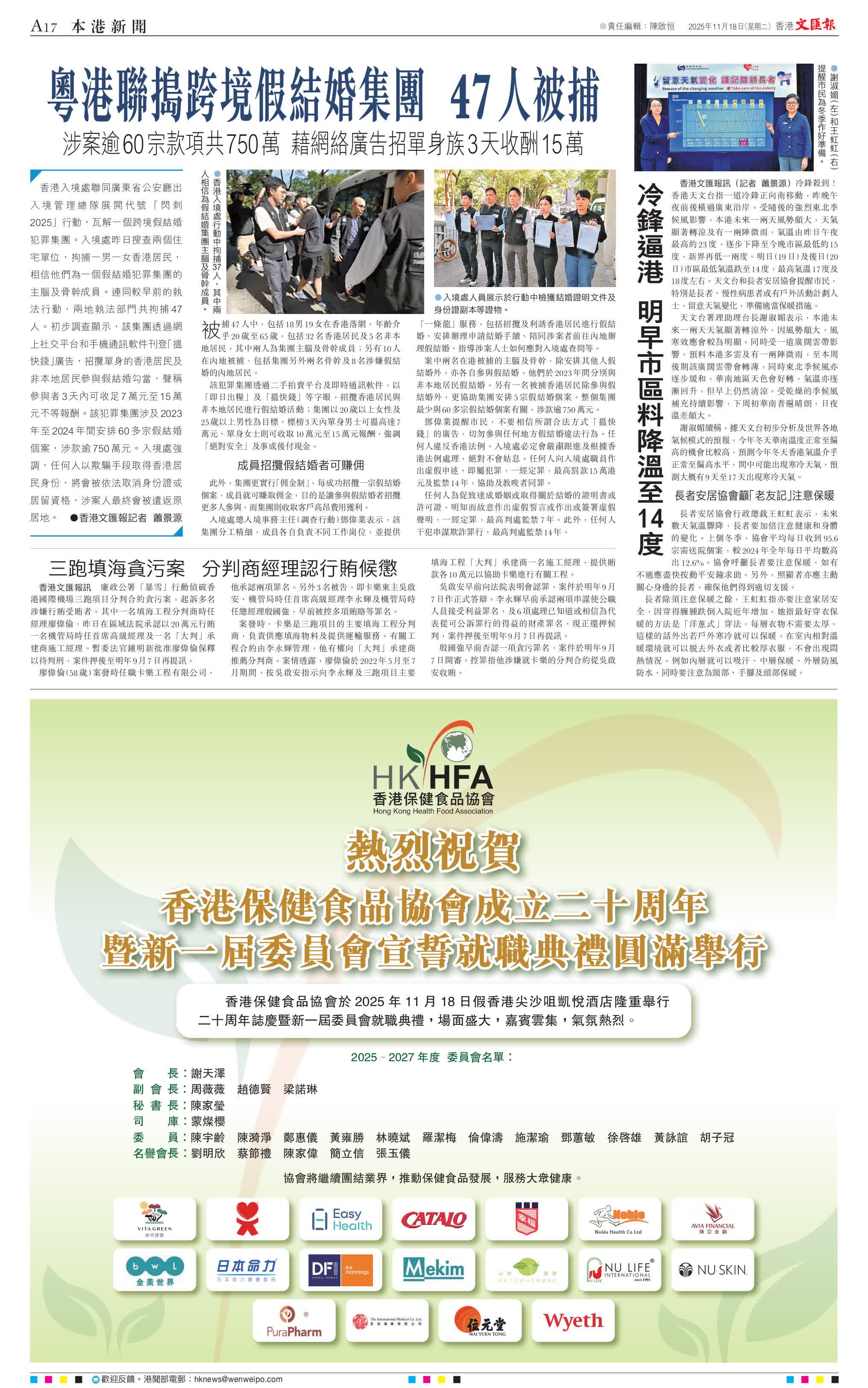 香港文匯報訊(記者 蕭景源)香港入境處聯同廣東省公安廳出入境管理總隊展開代號「閃刺2025」行動,瓦解一個跨境假結婚犯罪集團。入境處昨日搜查兩個住宅單位,拘捕一男一女香港居民,相信他們為一個假結婚犯罪集團的主腦及骨幹成員。連同較早前的執法行動,兩地執法部門共拘捕47人。初步調查顯示,該集團透過網上社交平台和手機通訊軟件刊登「搵快錢」廣告,招攬單身的香港居民及非本地居民參與假結婚勾當,聲稱參與者3天內可收足7萬元至15萬元不等報酬。該犯罪集團涉及2023年至2024年間安排60多宗假結婚個案,涉款逾750萬元。入境處強調,任何人以欺騙手段取得香港居民身份,將會被依法取消身份證或居留資格,涉案人最終會被遣返原居地。