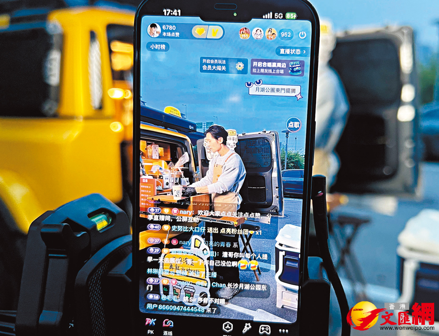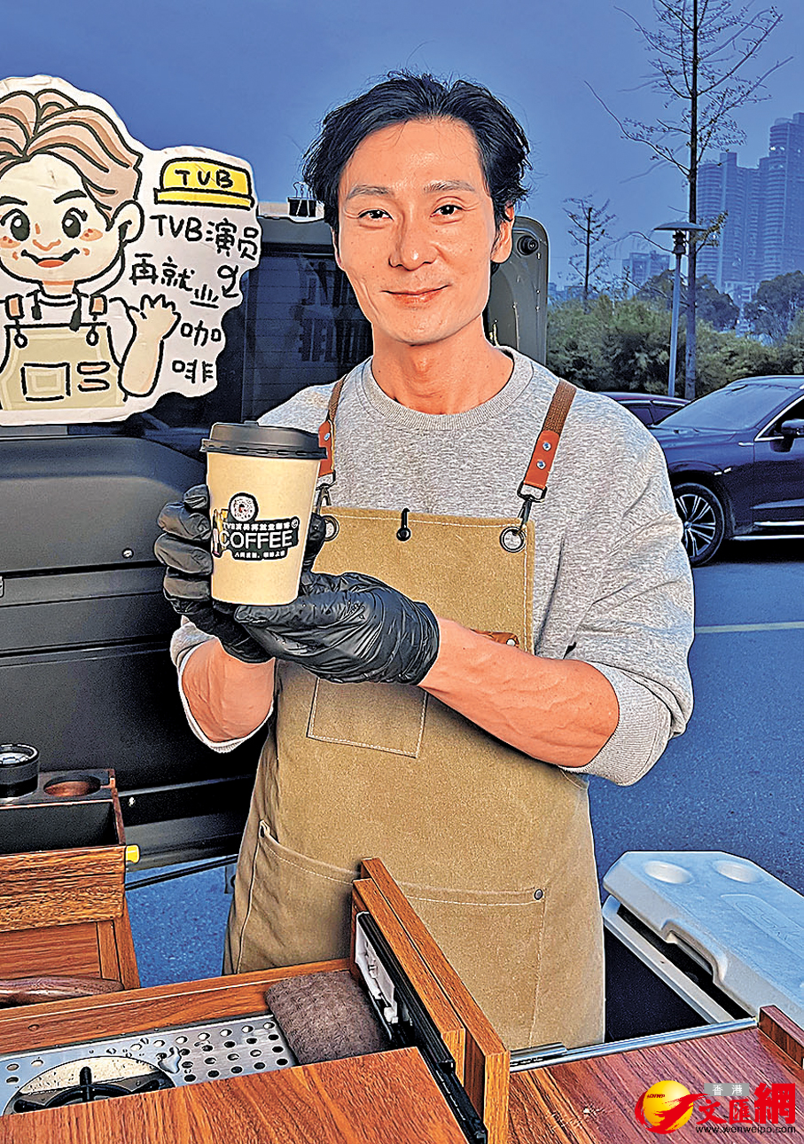 日前,香港文匯報記者專程來到長沙月湖公園東門,路邊一輛掛着「TVB演員再就業咖啡」燈牌的明黃色越野車格外醒目,後備箱裏是五臟俱全的操作台,咖啡香隨風飄散。姚亦澧身穿衛衣、繫着圍裙,在車旁忙碌,身材消瘦,和TVB劇集中的形象相比,有了更多時光的沉澱。車旁擺着兩張野餐桌,還架設着直播設備,他邊做咖啡邊和直播間粉絲互動。如今,姚亦澧的生活節奏緊湊:每天三場直播、下午擺攤賣咖啡、夜晚收檔後繼續開播,每天只睡四五個小時。談到當前的生活狀態,他淡然說:「沒戲拍嘛,總要幹活。不想放棄演員身份,就得先養活自己。」