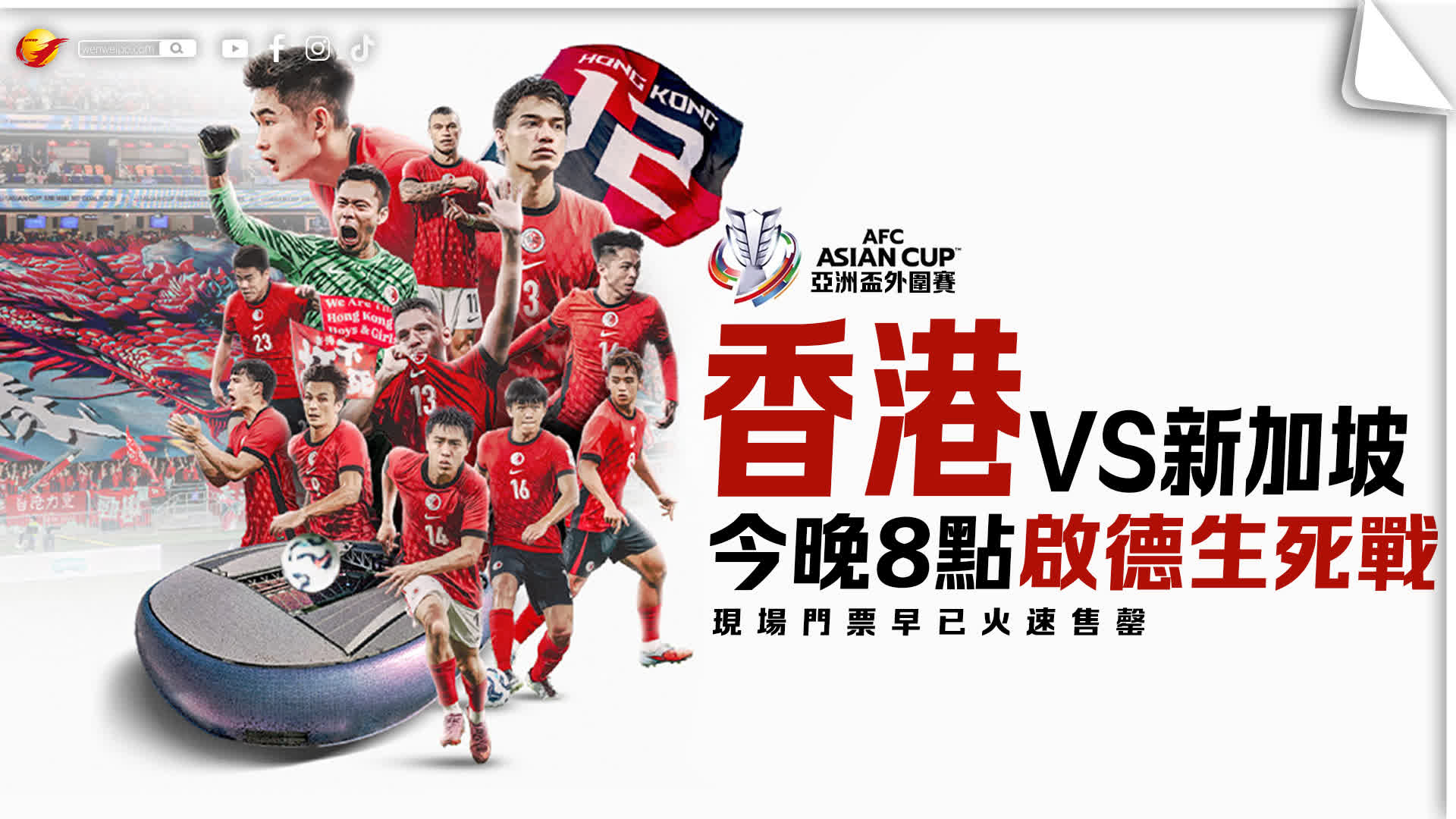 香港隊對新加坡的亞洲盃外圍賽第三圈賽事,將於今(18日)晚8時在啟德主場館舉行。