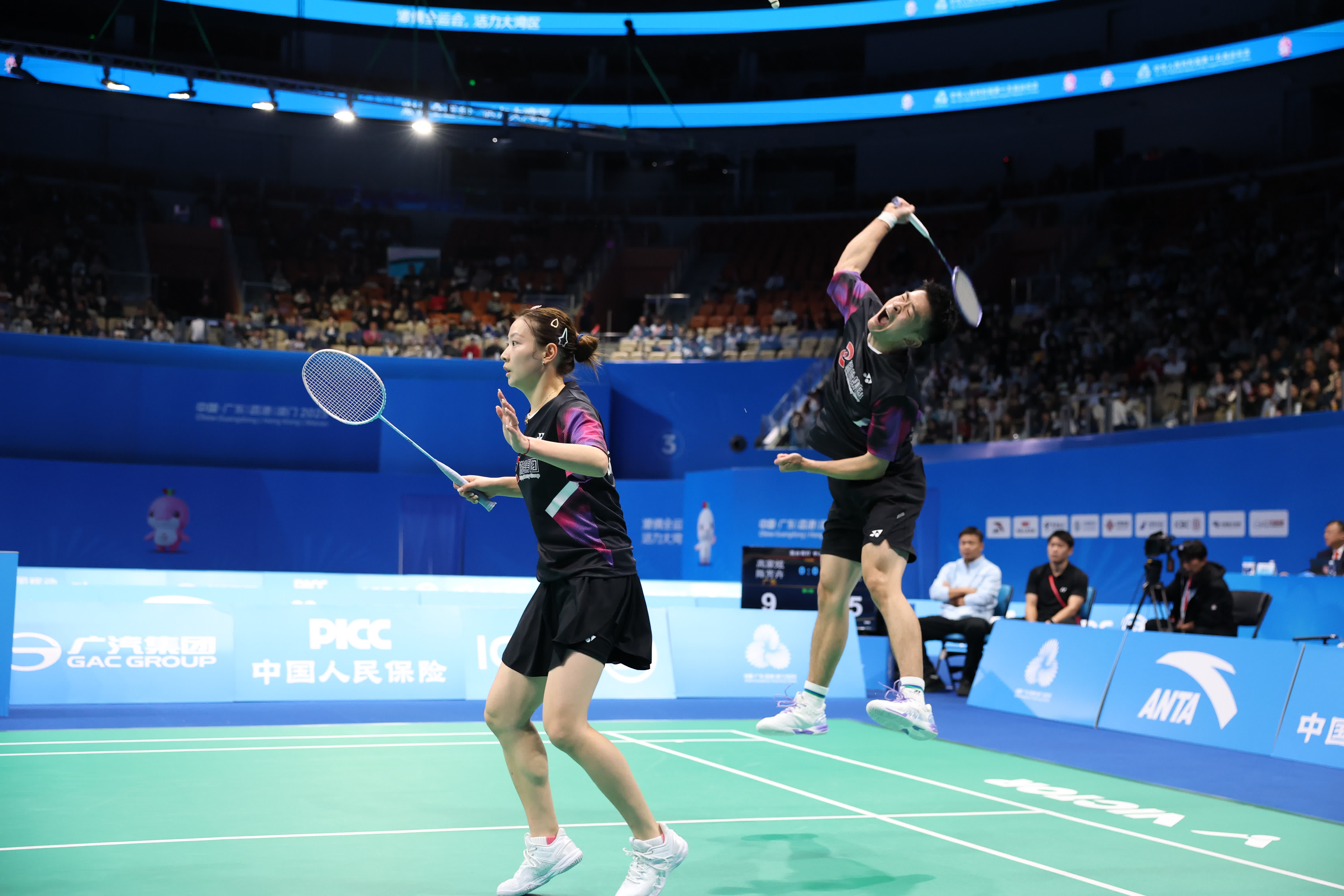 (大公文匯全媒體記者 林奕彤)本屆羽毛球成年組混合雙打半決賽今日(18日)在深圳展開爭奪。備受關注的浙江隊「雅思組合」鄭思維/黃雅瓊以21-14、21-7擊敗廣東隊高家炫/陳芳卉,強勢挺進決賽,為兩人的全運會「最後一舞」再添濃墨重彩的一筆。