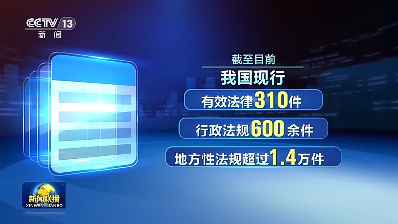 從國家安全到科技創新,從公共衞生到生物安全,從生態文明到防範風險,再到涉外法治等,我國一批關乎長遠的重要領域立法穩步推進。截至目前,我國現行有效法律310件、行政法規600餘件、地方性法規超過1.4萬件。