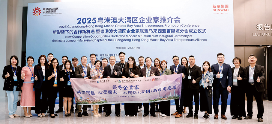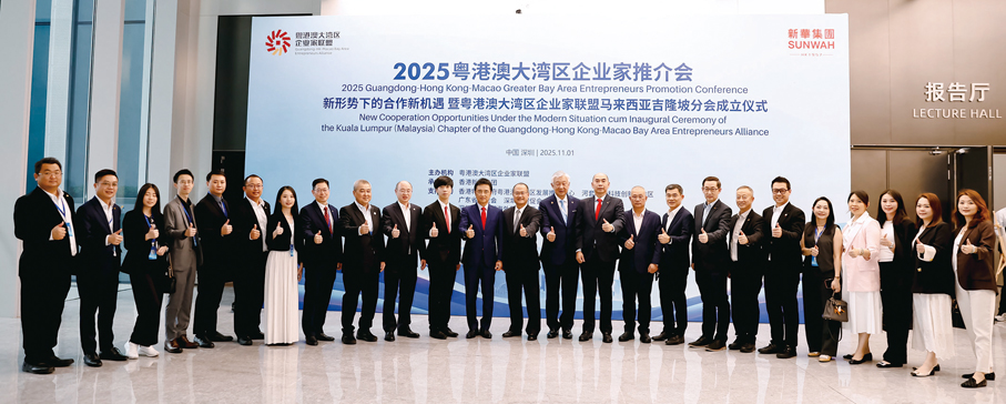 2025年11月1日 ,「2025粵港澳大灣區企業家推介會」暨「粵港澳大灣區企業家聯盟馬來西亞吉隆坡分會成立儀式」在深圳隆重舉行。全國政協常委、粵港澳大灣區企業家聯盟主席蔡冠深在致辭中強調,李強總理剛結束的大馬之行,提出了推動中國—東盟自貿區3.0版,以及將2026年定為「中國—東盟建立全面戰略夥伴關係5周年主題年」等重大倡議。這為中馬關係和大馬與粵港澳大灣區企業家的深化合作,帶來了全新的視野和更廣闊的空間。