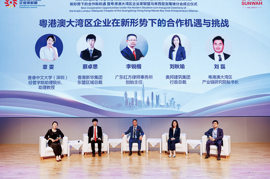 香港特區政府粵港澳大灣區發展副專員馮雅慧,粵港澳大灣區企業家聯盟聯席主席兼馬來西亞分會榮譽會長戴良業、粵港澳大灣區企業家聯盟常務副主席兼馬來西亞分會聯席會長盧成全、粵港澳大灣區企業家聯盟馬來西亞分會會長吳逸平、粵港澳大灣區企業家聯盟常務副主席兼馬來西亞分會聯席會長蔡卓思,與一百多位兩國政商領袖與企業家齊聚一堂,共同探討新形勢下區域合作與企業出海的新趨勢。