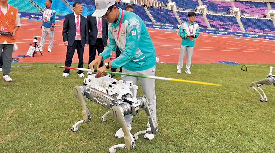 18日上午舉行的男子標槍決賽上,兩隻憨態可掬卻動力十足的機器狗根據比賽節奏,在起點和終點之間來回穿梭,小步快跑的動作使得標槍能夠在10秒之內歸位。相較於此前杭州亞運會的機器狗,十五運會田徑賽場的機器狗速度更快、體型更大、載重更多,走位也更精準,且工作職責從鐵餅項目擴展至標槍、鏈球等多個項目。這是機器狗首次大規模應用於大型運動會,機器狗以靈活的身姿穿梭在賽場內,高效完成器材轉運任務,為賽事注入科技活力。