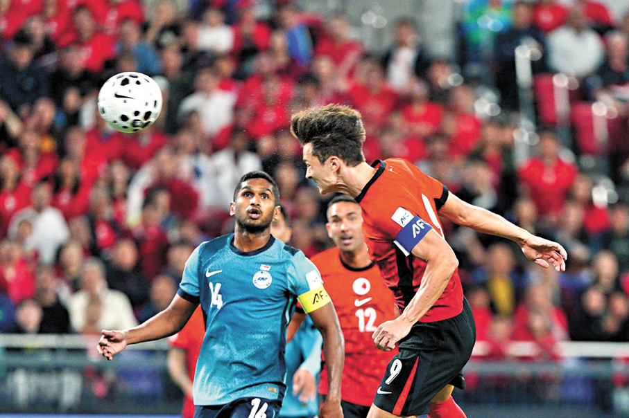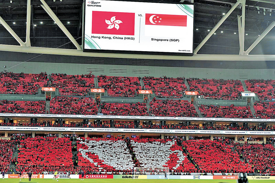 中國香港足球代表隊昨晚坐鎮啟德體育園主場館迎戰新加坡,兩隊上演亞洲盃外圍賽「生死戰」,若勝出將提前躋身決賽周,吸引47,762名球迷坐爆啟德,刷新了港隊主場紀錄,場外掛起滿座紅旗。今仗許勝不許敗的港足,上半場由安永佳頭槌破網下領先一球,惟下半場被新加坡五分鐘內連入兩球,力戰到最後仍以1:2告負,緣盡2027年亞洲盃決賽周。