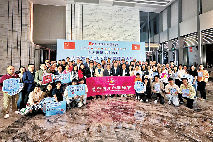 香港文匯報訊(大公文匯全媒體記者 蘇鉅祖、李紫妍 廣州報道)「內地港人1207齊投票動員大會」日前在廣州南沙舉辦,特區政府駐粵辦署理主任莊港生說:「投票不僅是一項公民權利,更是一份對香港未來的責任與擔當,承載着我們對建設更繁榮、更穩定、更美好家園的共同期望。」他向在粵、在穗港人詳細介紹選舉事務處在港珠澳大橋旅檢大樓、香港國際機場等地設立鄰近邊境投票站等便利安排,呼籲他們踴躍回港投票。聚居大量港人的番禺祈福新邨,選舉當天,祈福集團將安排多輛免費巴士,接送在廣州、番禺的香港選民前往福田口岸,方便他們投票。投票者憑「心意謝卡」,可以享受祈福酒店攜程價額外九折優惠,有效期至明年4月30日。
