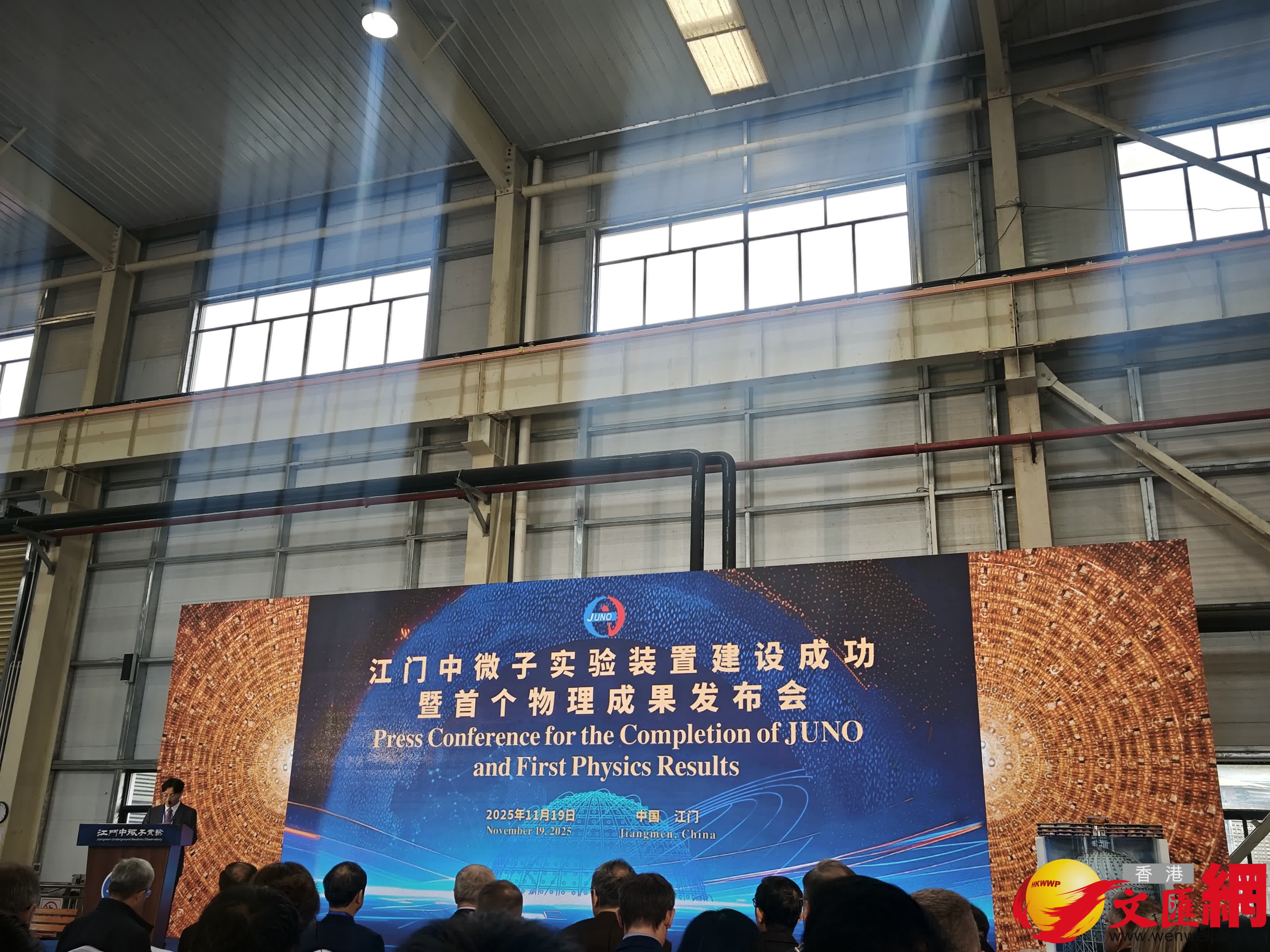 (香港文匯網記者 劉凝哲 廣東報道)11月19日,中國科學院高能物理研究所在廣東省江門市舉辦發布會,宣布江門中微子實驗(JUNO)裝置建設成功並發布了首個物理成果。經過JUNO國際合作組十餘年的設計和建設,JUNO成為國際上首個建成的新一代超大規模、超高精度的中微子實驗裝置。JUNO在運行期間首批獲取的數據顯示,其探測器關鍵性能指標全面達到或超越設計預期,表明JUNO已準備好開展中微子物理前沿研究。