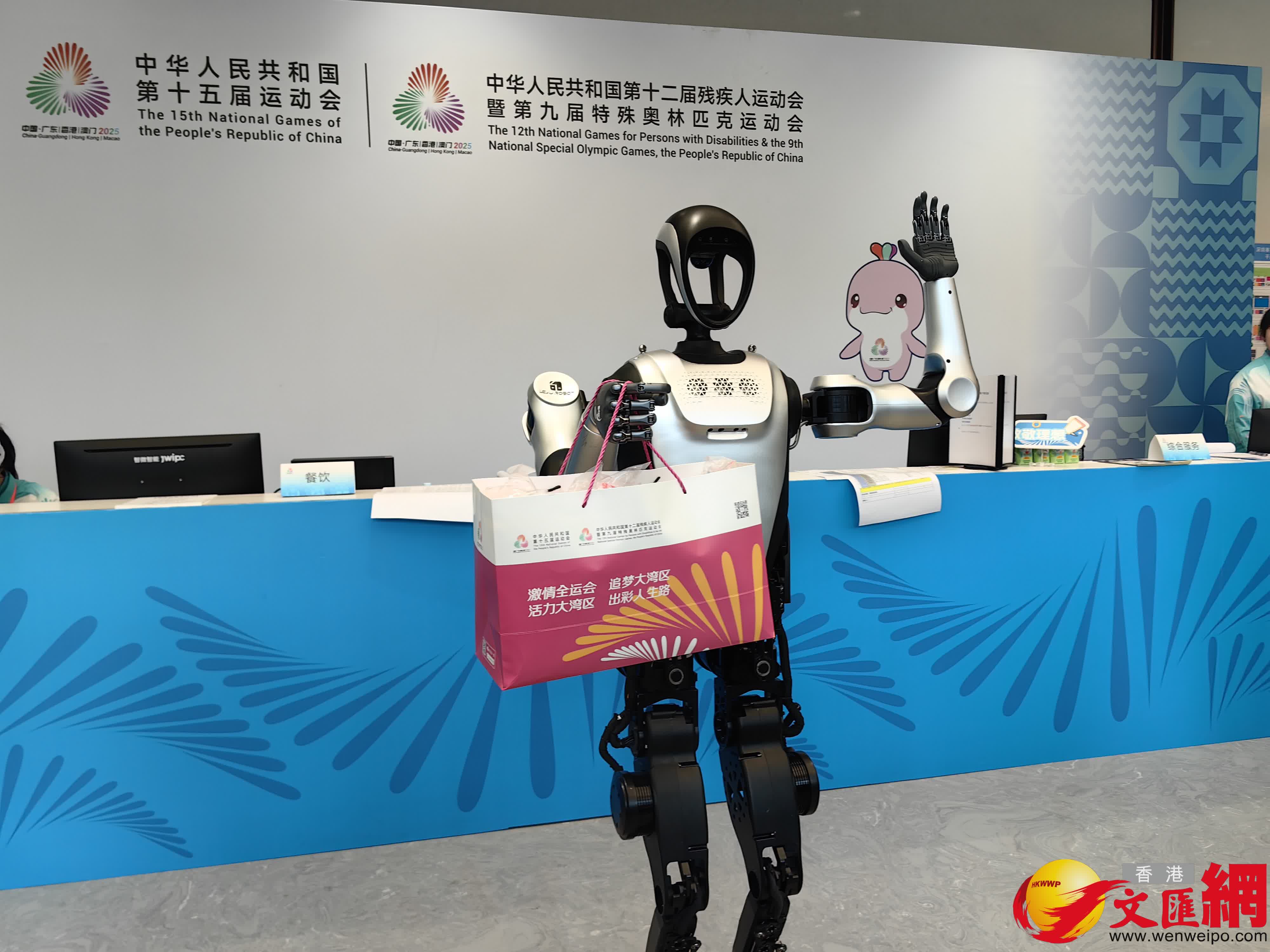 (香港文匯網記者 郭若溪)想和全運會火炬手貼貼互動?想親眼見證科技如何玩轉賽事服務?11月19日,十五運會深圳賽區執委會聯合樂聚機器人,在深圳賽區分媒體中心進行了場超吸睛的「深探全運」媒體採風活動!本次活動以「全運會火炬手「夸父」在深圳媒體中心體驗工作的一天」為主題,通過迎賓接待、媒體包分發、講解服務、禮品派發四大環節,讓現場媒體沉浸式感受「科技全運、智慧全運」的獨特魅力,原來賽事服務還能這麼玩!