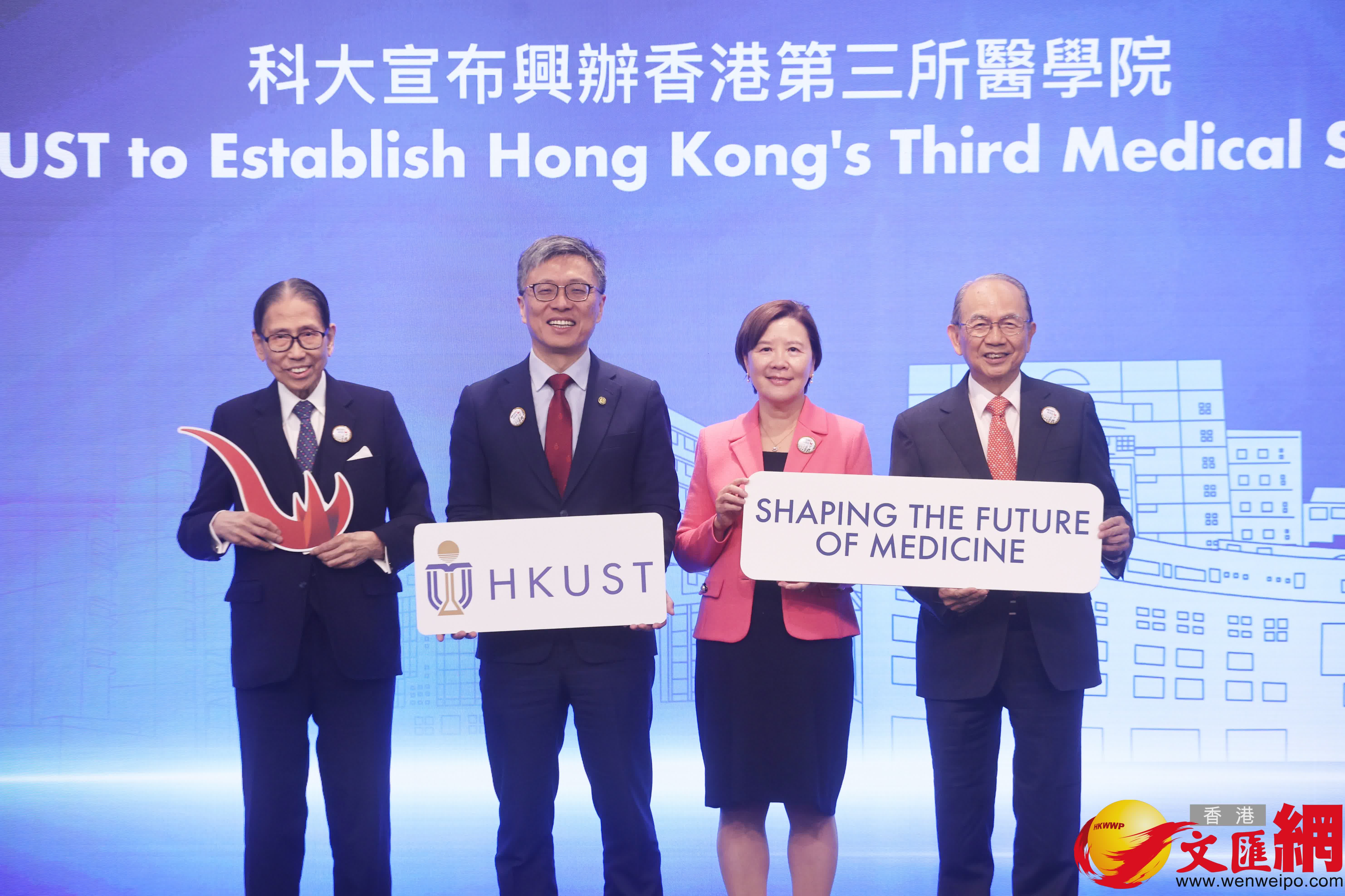 (香港文匯報記者 陸雅楠)特區政府昨日宣布通過由香港科技大學籌辦本港第三所醫學院,科大今日舉行記者發布向公眾介紹發展計劃。校長葉玉茹介紹醫學院初期將於清水灣校園興建醫學院教研大樓,並善用以及共享現有大學資源;課程方面將開設四年制第二學位內外全科醫學士課程,預計在2028年招收首屆50名學生,醫學院將為香港量身定製世界級課程,以符合香港醫務委員會的既定要求,並着重早期臨床體驗,結合基層醫療與臨床實習,推動跨專業教育;積極組建教研團隊。長遠計劃將於牛潭尾校園度身打造先進醫學院校舍,毗鄰智慧教研醫院,與北部都會區的新田科技城及大學城發揮協同效應,助力粵港澳大灣區醫療發展。校董會主席沈向洋透露,科大未來25年將投放超過70億元推動醫學院發展。