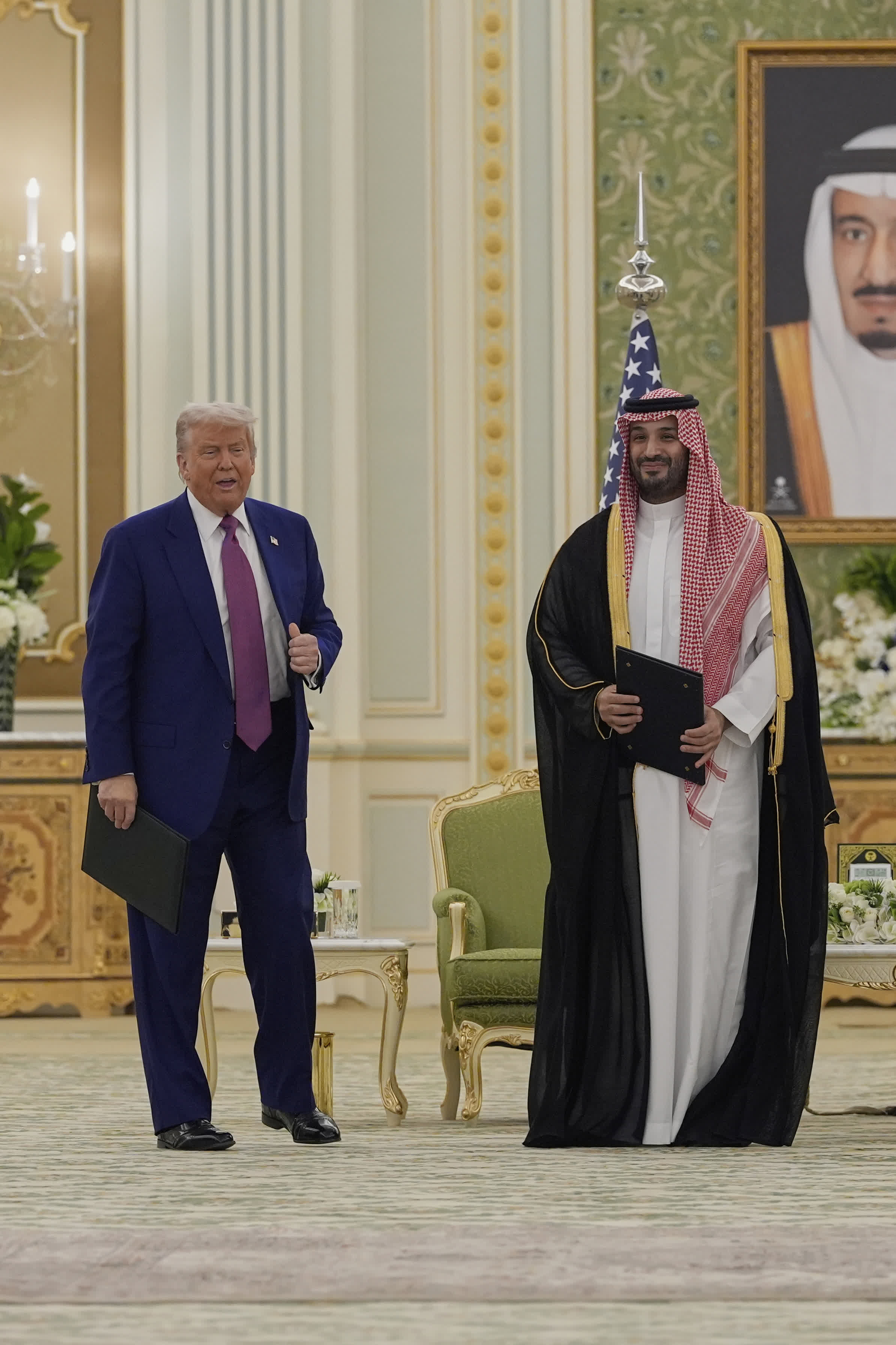 據白宮發布的情況說明書,美國和沙特當天簽署了《美沙戰略防務協議》,並就民用核能、人工智能、資本市場等領域簽署一系列文件。美國允許沙特使用美國的人工智能系統,同意向沙特出售F-35隱形戰鬥機;沙特將購買近300輛美國坦克,向美國基礎設施、技術和工業領域投資近1萬億美元。兩國還同意就減少非關稅壁壘、改善投資環境等開展合作。