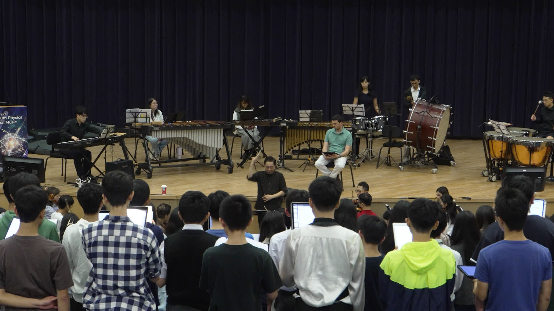 首次看到美國青年現代作曲家Joshua T Rivero完成的總譜後,梁建楓深感意外。「以為量子力學相關的樂譜會很現代,像抽象畫那樣,但這份總譜工整有序,用傳統手法展現量子力學的演變」,梁建楓指,這份樂譜融合傳統、無調性與現代元素,層層遞進詮釋量子力學世界的跳躍,就像音樂從有調性到無調性的過程一樣。無調性音樂,即是指無固定調式的音樂,它在梁建楓看來「更自由」,像量子一樣從一點延伸到新境界,相信觀眾首次聽到這類音樂會感到新鮮。
