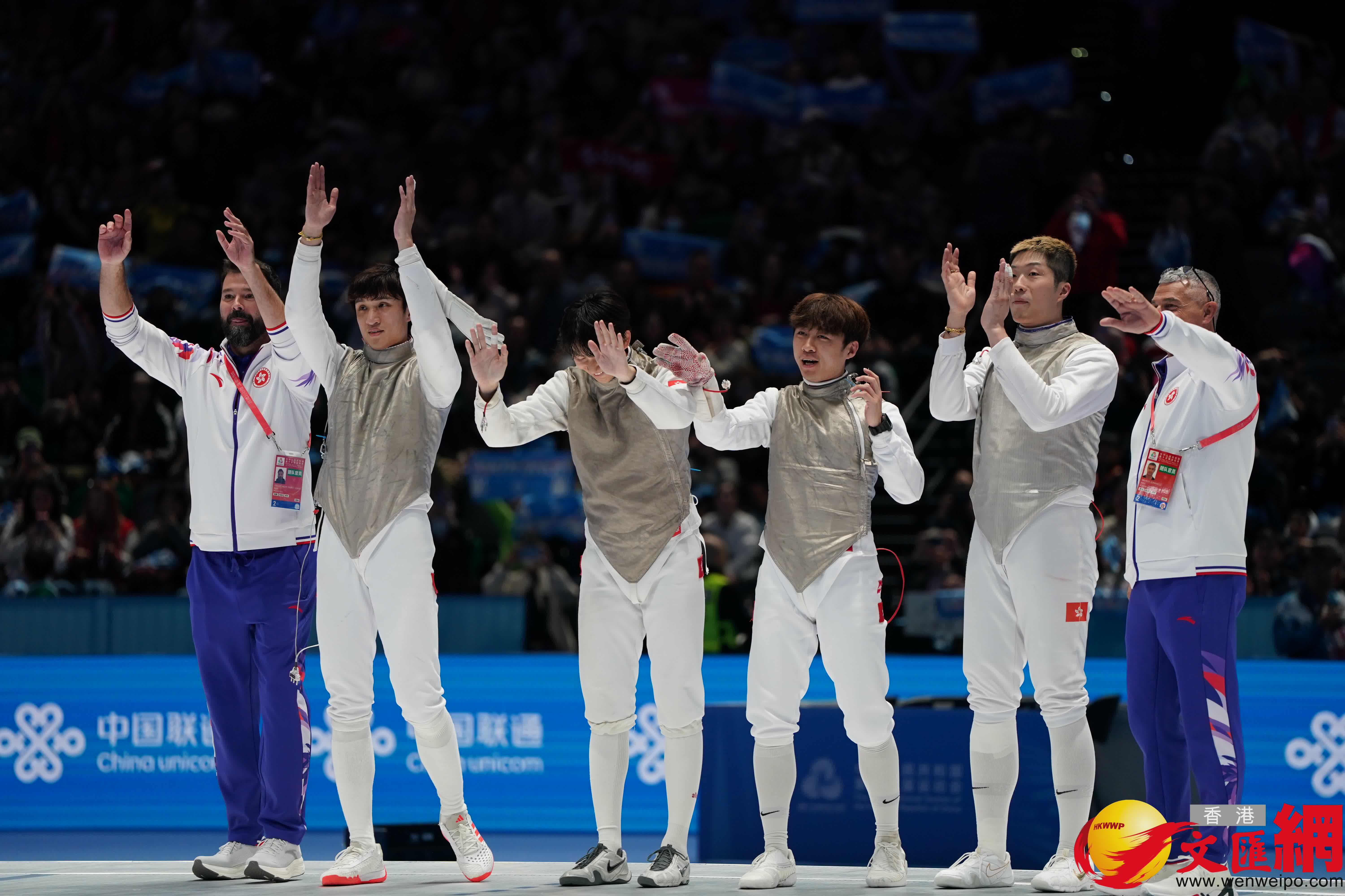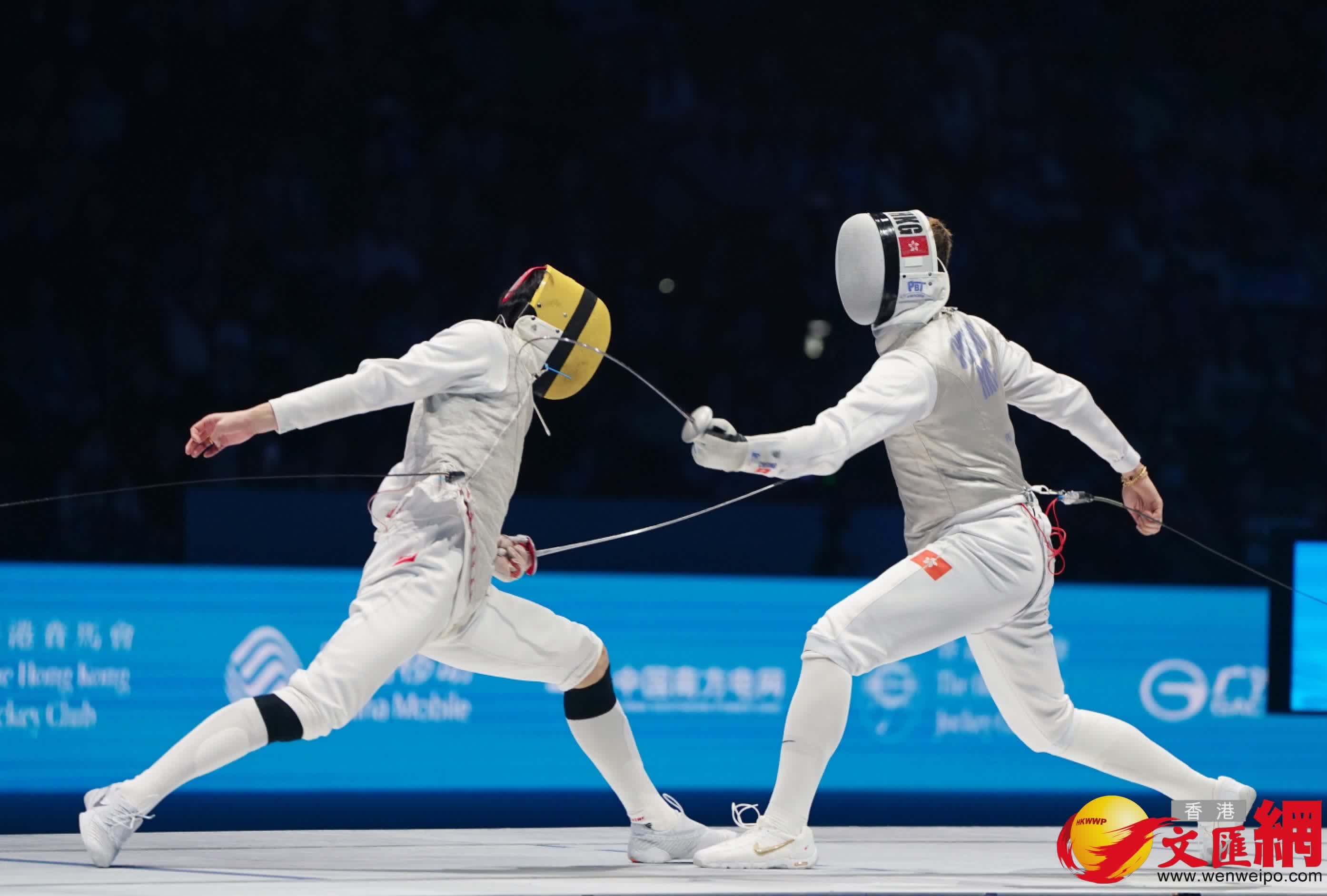 決賽由張家朗打頭陣對杭州亞運金牌得主陳海威,港將先取1分,及後陳海威連取2分反超前2:1,二人今節均主動進攻,張家朗在3:3後連取兩分,助港隊以5:3完第一節。第二節由「世一」蔡俊彥鬥今屆全運個人賽金牌得主許杰,後者在今節初段令蔡俊彥陷入苦戰,蔡俊彥調整後打出兩劍單燈,終以10:9完第二節。第三節由梁千雨對陳偉全,梁千雨雖然在領先下被對手連追數分,幸好最後一劍裁判判梁千雨先起動,港隊以15:13完成今節。