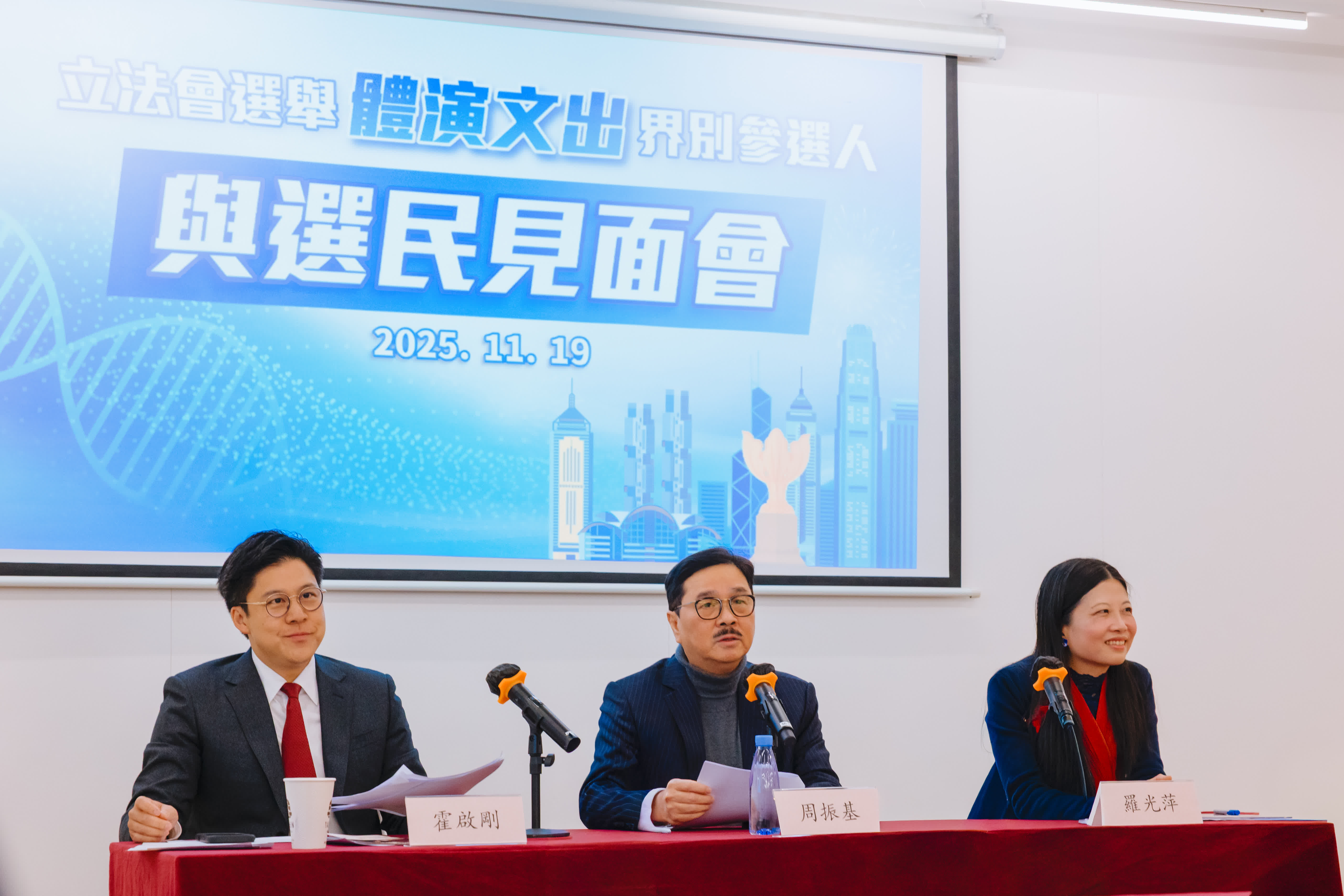 本屆選舉競爭多元激烈,161名候選人角逐90個席位。候選人之間展開公正、公平、公開的良性競爭,向選民具體闡明其政策主張以爭取支持。2025年立法會換屆選舉體演文出界別由霍啟剛和羅光萍兩名候選人,競爭一個席位。見面會上,兩位候選人分別介紹參選初衷和政綱理念,並就業界重要議題各抒己見。