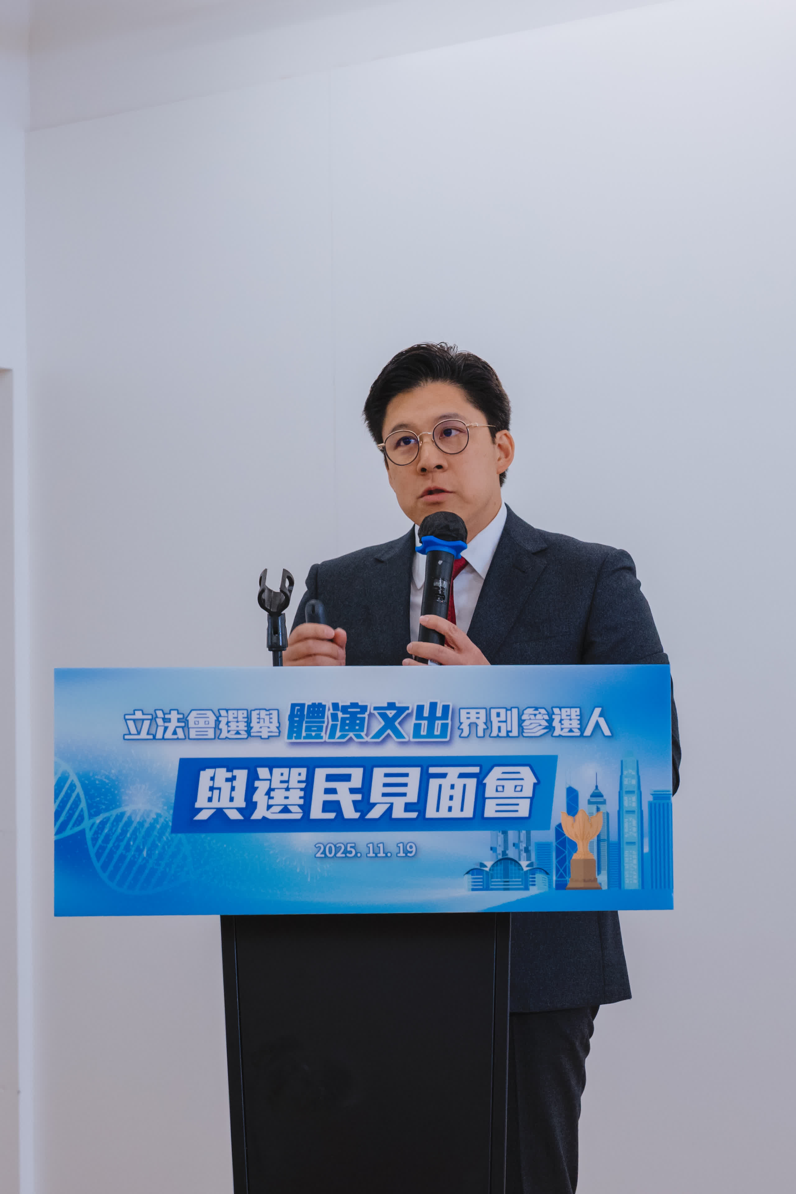 霍啟剛講解參選政綱時,强調以文化體育為載體,深化國際交往合作,並進一步推動大灣區文體旅融合,服務國家區域發展戰略。他指出,香港具備融通中外的獨特平台優勢,應積極引入並主辦更多國際級文體盛事,同時助力國家賽事品牌走向世界。