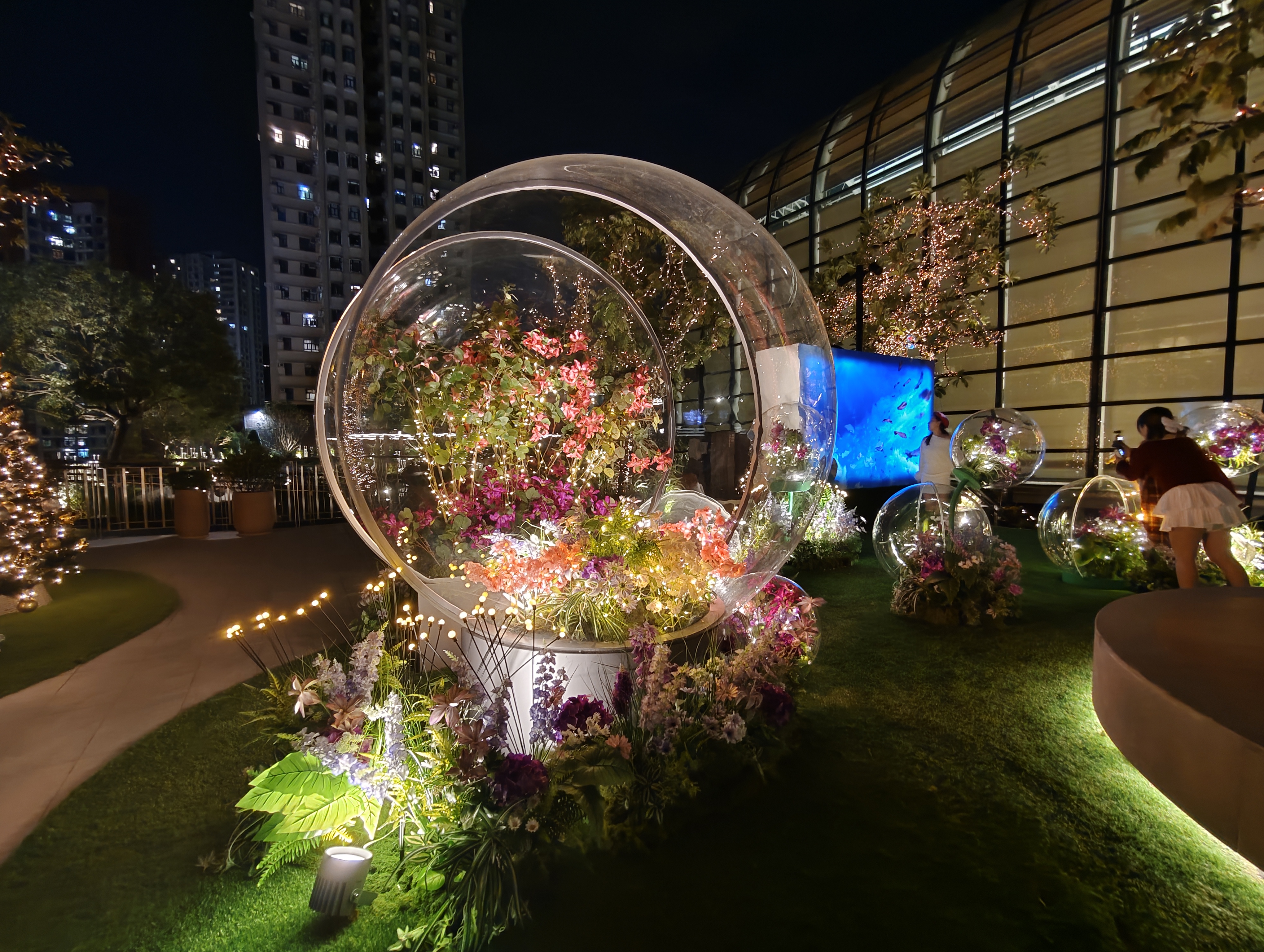 此外,場內更設三大唯美聖誕打卡裝置,NAKED Inc.將膾炙人口的投影互動技藝,以四季更替為主題呈現「四季更迭影匯」,讓遊人遊走於上感受大自然的壯麗變化,並與季節花景互動。七彩花卉及香港市花洋紫荊隨水點凝聚成巨型「繁花水晶球」,入夜後融入光影之中,花瓣緩緩飄落於靜謐夜空;另有日夜景致截然不同的「浮花.幻境」,成為浪漫打卡的不二之選。