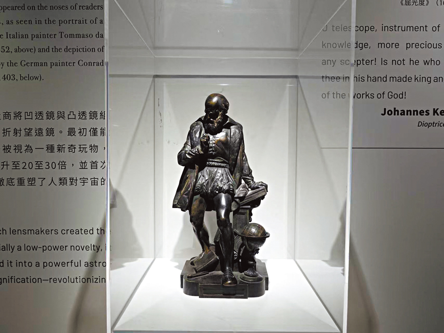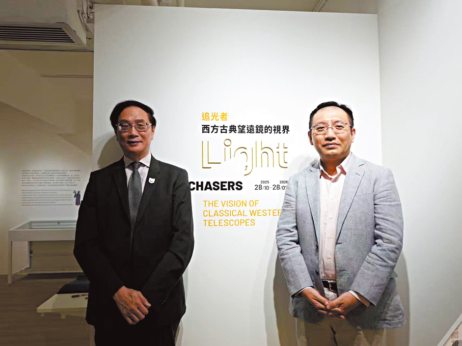 人類「追光」的歷史可追溯千百年,東方有夜觀星際天象、洞察四象變化,西方亦有倚靠早期科學技術觀察天空的記錄,各含玄機。近日,托勒密博物館在葵芳展廳推出年度特展「追光者:西方古典望遠鏡的視界」。展覽以托勒密博物館珍藏的歐洲古董望遠鏡為核心,梳理從古希臘到近代科學革命期間,人類認識光學、拓展視界、追逐星光的偉大征程。 ●文、攝:香港文匯報記者 胡茜這場融合文物珍品、科技互動與藝術創作的展覽,將帶領觀眾從地中海到銀河系,完成一場貫穿人類文明史的光學漫遊。