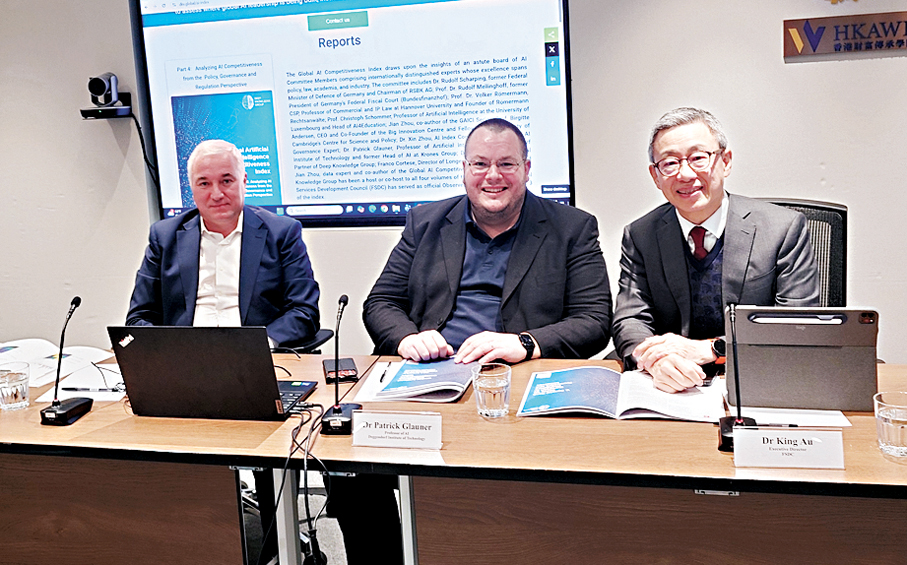 香港文匯報訊(記者 岑健樂)金發局與Deep Knowledge Group昨日發布《全球人工智能競爭力指數報告》第四版。報告提到,當前全球人工智能(AI)監管模式分化,其中歐盟以權利與風險為本主導,在AI監管方面處於領先地位;美國則以去中心化及創新優先;中國則由國家主導、產業政策推動,而美國和中國則在人工智能的應用實踐中擁有卓越表現。金發局行政總監區景麟昨表示,國家「十五五」規劃建議表明要加強人工智能產業發展,料內地人工智能產業將有更多發展空間。他亦看好香港作為國際金融中心,可發揮「超級聯繫人」角色,為內地與海外人工智能產業發展作出貢獻。