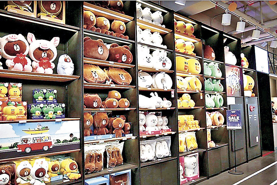 在新沙洞的LINE周邊商品專門店,門口擺放着一頭超大超醒目的熊大公仔,吸引着路人的目光,大家很難不踏進店內逛逛吧!而店裏有文具小物、拖鞋、毛茸茸的娃娃和抱枕。想要把平時手機裏的饅頭人、兔兔和莎莉帶回家,來掃貨就對了。