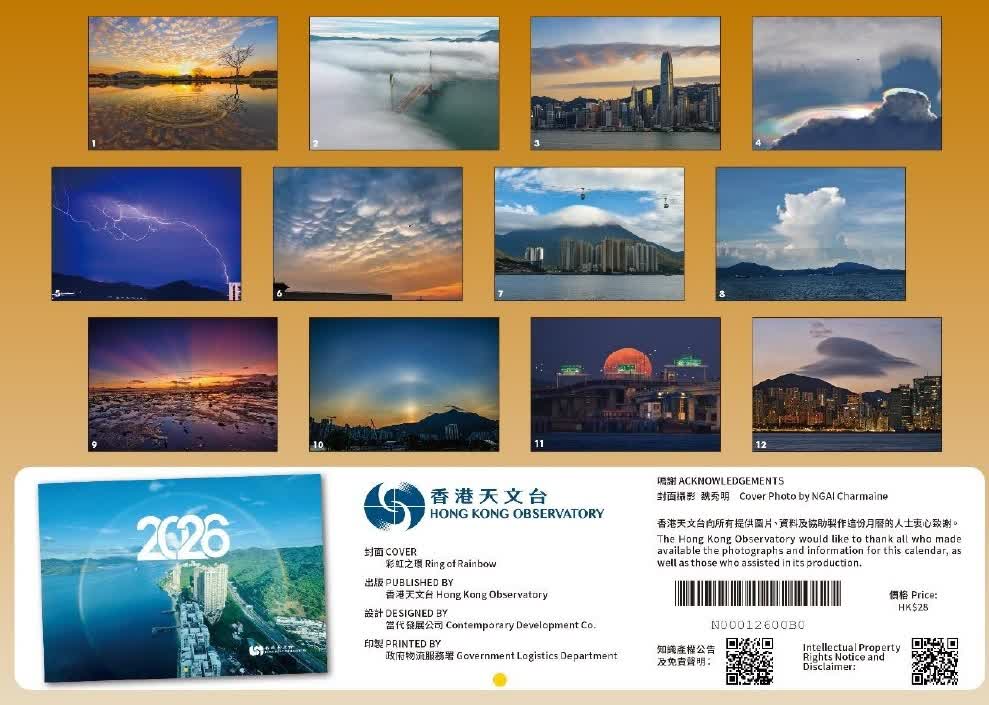 《香港天文台月曆2026》每冊售價28元,市民可於網上政府書店、香港天文台資源中心及政府新聞處刊物銷售小組購買。