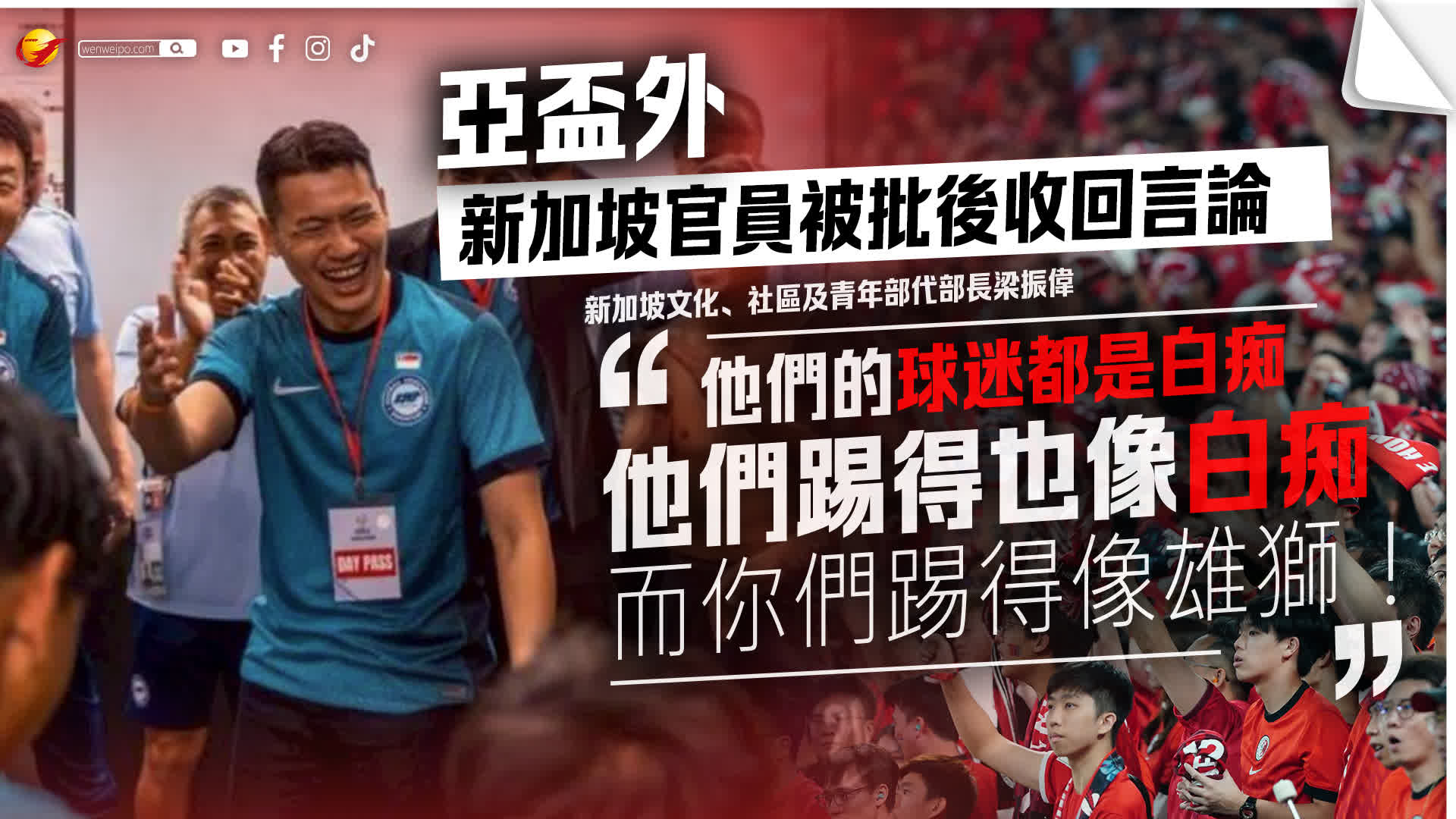 中國香港足球代表隊11月18日在啟德主場館迎戰新加坡,踢亞洲盃外圍賽的關鍵一戰,最終以1比2落敗,在世界盃外圍賽中正式出局,無緣晉級決賽周。新加坡文化、社區及青年部代部長梁振偉賽後與隊員慶祝時竟稱香港球迷和球員是「笨蛋」(idiots),言論引發爭議,他事後表示收回言論。