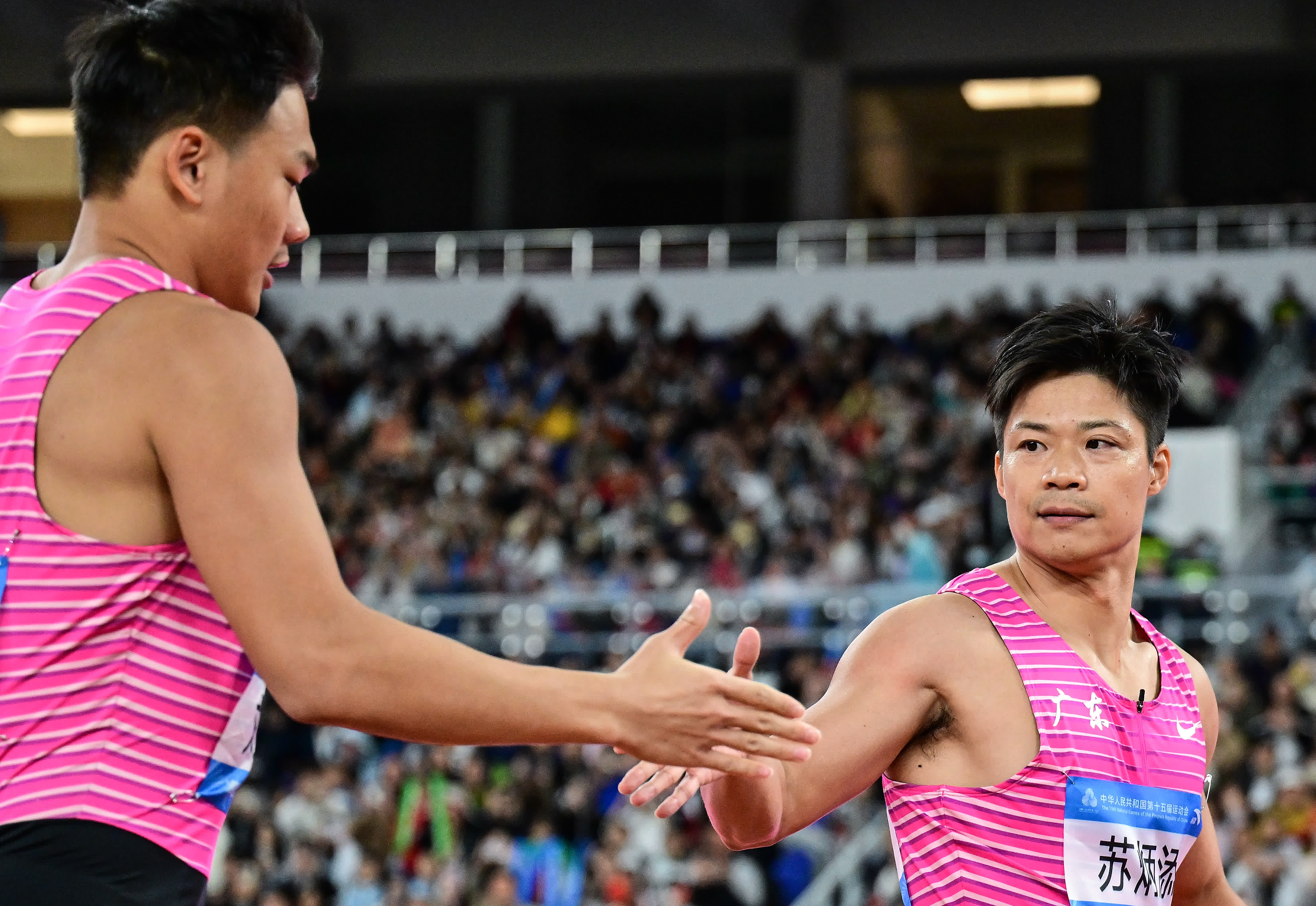 全運會男子4×100米決賽,湖北隊38秒60奪得冠軍,江西隊38秒64獲得銀牌,江蘇隊38秒68獲得銅牌,廣東隊38秒71獲得第四。