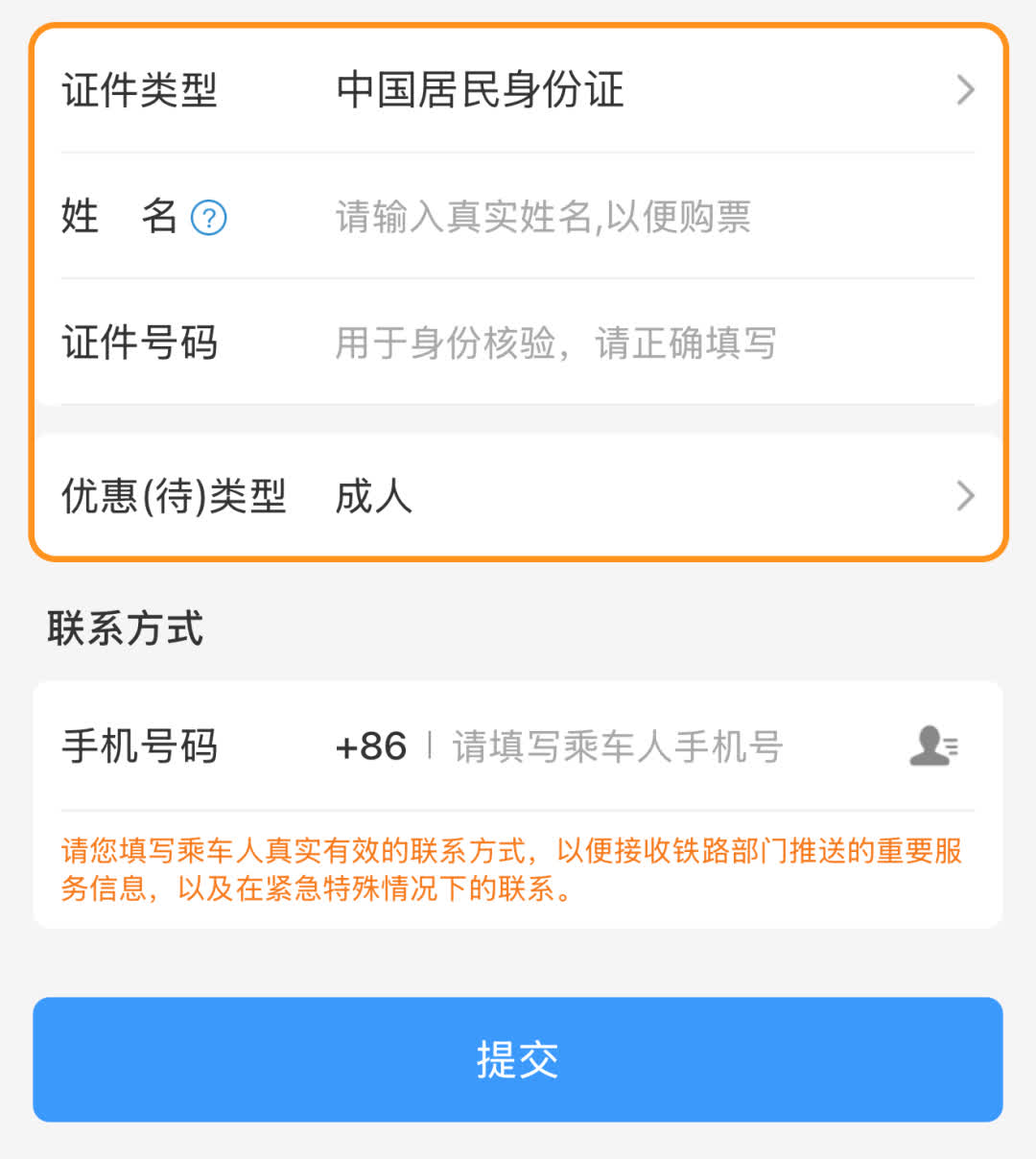 - 請提供乘車人真實有效的聯繫方式。對於未成年人、老年人等重點旅客以及無手機的旅客,可提供監護人或能及時聯繫的親友手機號碼。