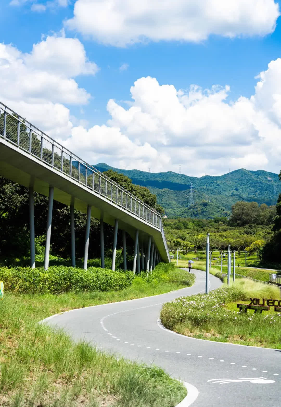 這裏是深圳首個綠道與碧道合二為一的綠色生態廊道,之前因為設計感建築和「公園空調房」火出圈,也被網友稱為深圳「最舒服、含金量最高」的森林綠道,人少景美。