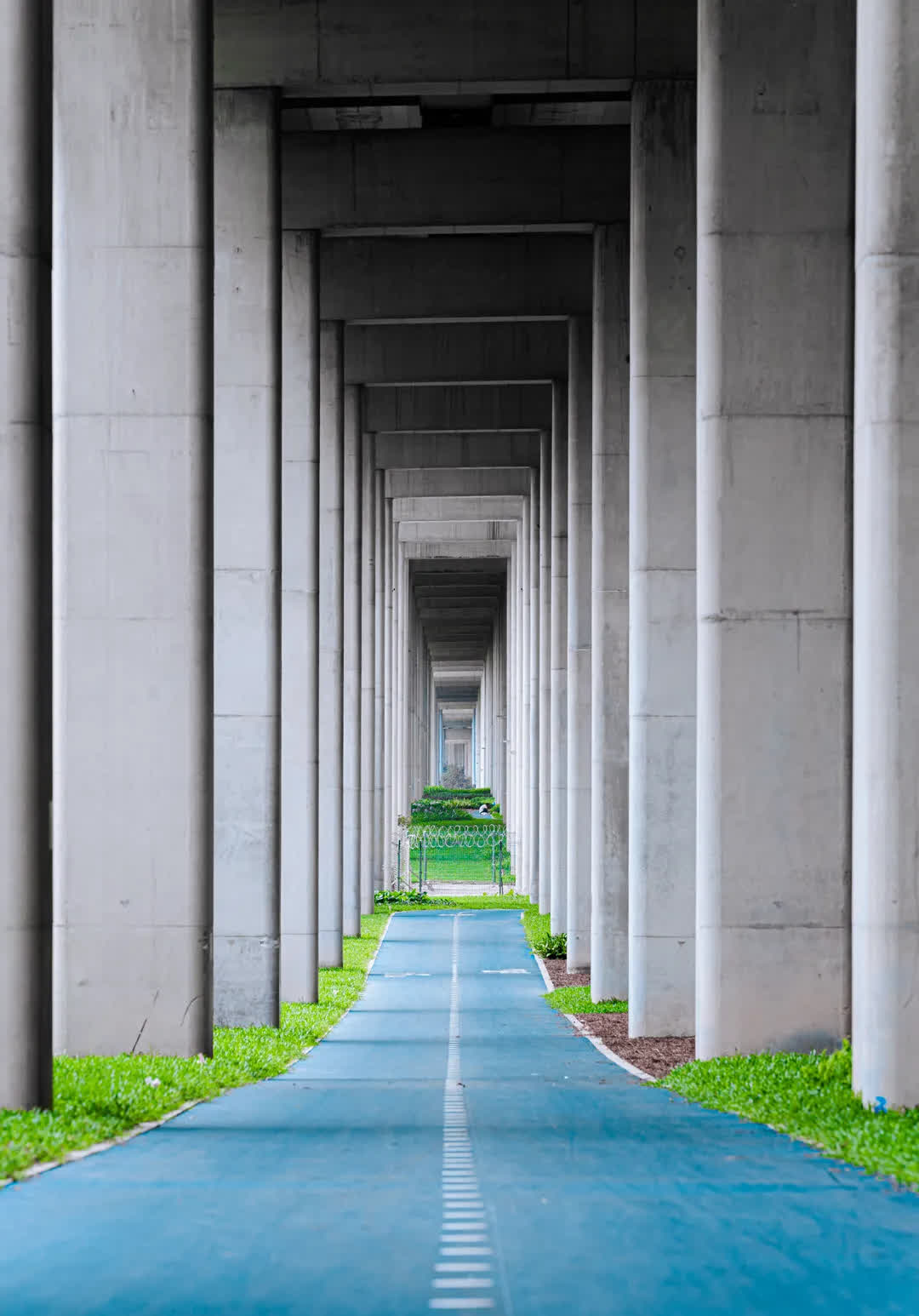 這條綠道有「先天優勢」——自帶「屋頂」,大部分區域在高速橋底下,不怕日晒雨淋,四面通風不悶熱。