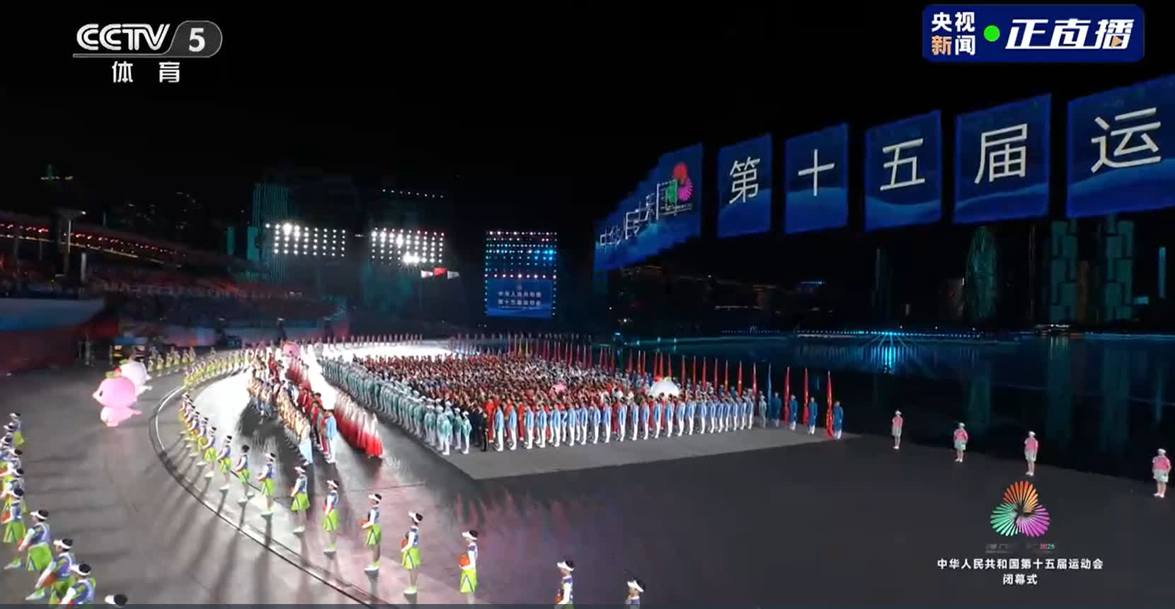 香港文匯報訊(記者 史柳藝)今天晚上,中華人民共和國第十五屆全國運動會於深圳寶安歡樂劇場閉幕。這場由粵港澳三地聯合承辦的閉幕式以「星辰大海」為主題,首創全球城市全景閉幕式與濱海實景舞台,將科技創新與人文底蘊深度融合,彰顯大灣區凝聚力與新時代中國風貌。