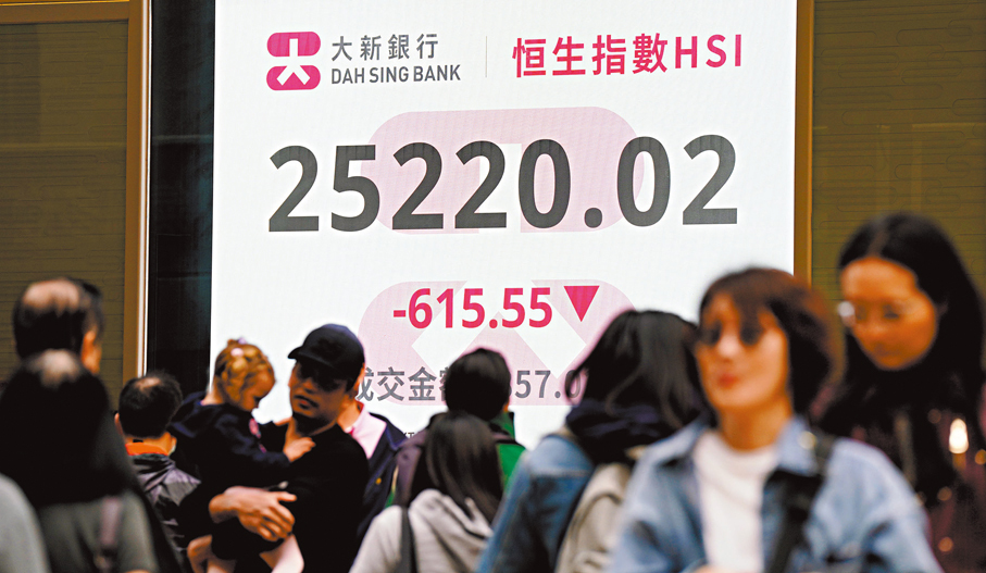美國多家科技巨頭圍繞AI推出總規模達數萬億美元的資本開支,被指是「非理性」繁榮,在投資者一片質疑聲中,全球AI相關股明顯回調。加上美國公布的9月非農就業人數增加11.9萬人超預期,令市場猜測美聯儲的減息步伐或會放緩,隔晚美股先升後急挫,拖累昨日港股大跌615點或2.4%,收報25,220點,科指更急瀉3.2%報5,395點。主板連創業板總成交2,858億元,「北水」淨流入銳減至約1億元,而周四「北水」淨流入為160億元。市場人士認為,美聯儲10月議息紀錄顯示,多名官員支持今年不再減息,這將會壓抑新興市場的股市表現。