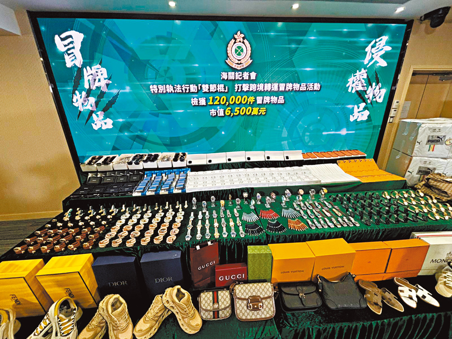 香港文匯報訊(記者 蕭景源)網上購物日漸普及,內地「雙十一」購物節折扣優惠更吸引大量市民消費,有不法分子企圖藉着巨大物流量,將冒牌物品混入正貨的電商物品中,意圖渾水摸魚,出境或入境香港。香港海關早前展開為期三星期的跨境轉運冒牌物品執法行動,一共偵破29宗案件,檢獲約12萬件轉運美洲、歐洲及中東地區的懷疑冒牌物品,估計市值約6,500萬元。