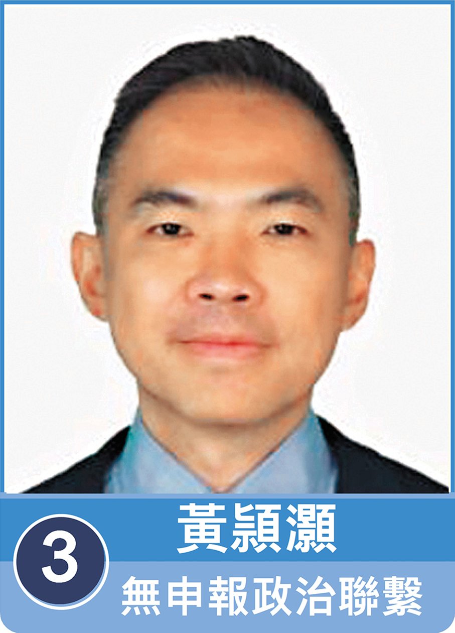 3號候選人黃頴灝形容,能以區議員身份服務社區是無比光榮的事,如有機會在其他平台為香港發熱發亮、解決老大難問題,願意再接再厲;而擔任區議員後,他在地區實踐,對基層治理、服務居民均有新經驗。是次立法會參選以「破除藩籬、破解矛盾」為口號,主要政綱包括加快交通革新以打造高效連接;推動綠色轉型以建設海綿城市;發展創新經濟以培育未來產業;改善房屋供應以推動社區發展;提升教育質素以培養優秀人才;以及強化醫療服務,完善福利體系。