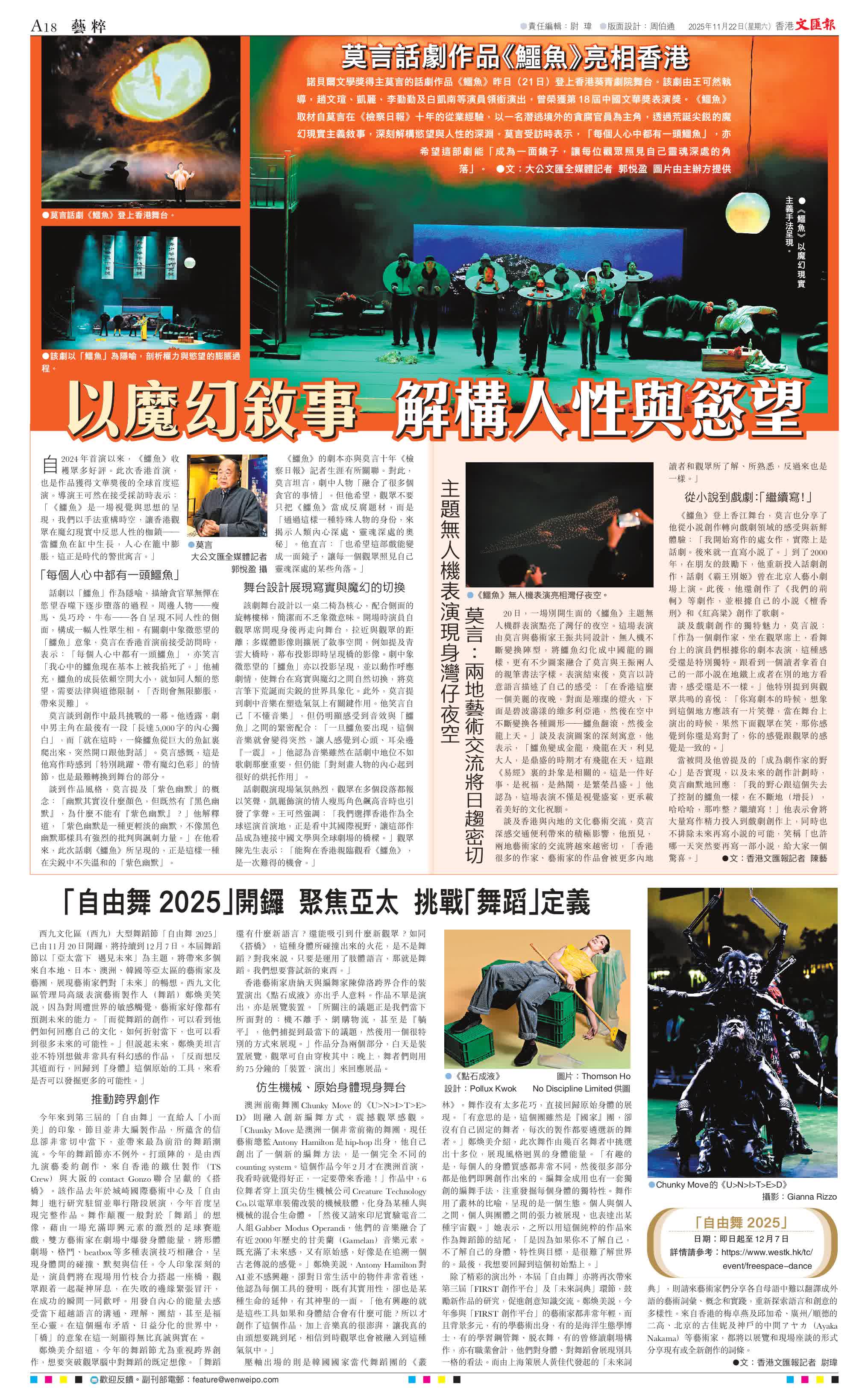自2024年首演以來,《鱷魚》收穫眾多好評。此次香港首演,也是作品獲得文華獎後的全球首度巡演。導演王可然在接受採訪時表示:「《鱷魚》是一場視覺與思想的呈現,我們以手法重構時空,讓香港觀眾在魔幻現實中反思人性的枷鎖——當鱷魚在缸中生長,人心在籠中膨脹,這正是時代的警世寓言。」