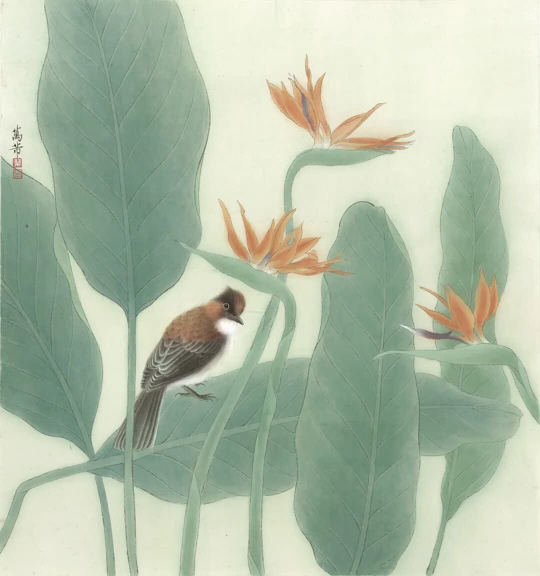 萬芾是上海實力派花鳥畫家,她筆下「花鳥世界」中的二十四節氣,作品色彩豐富,構圖現代而不失傳統韻味。