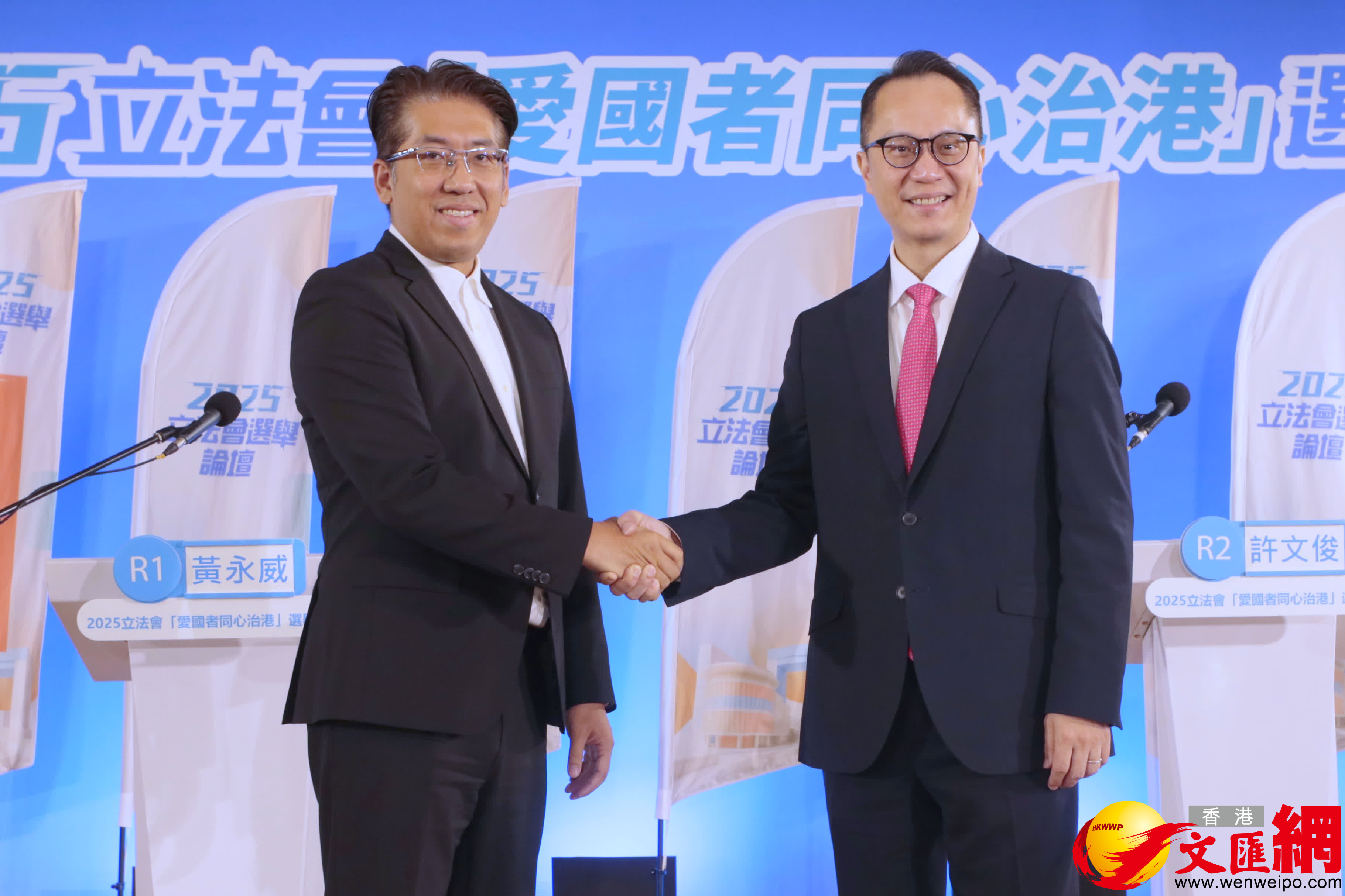 香港文匯報訊(記者 吳健怡)2025立法會「愛國者同心治港」選舉論壇功能界別工業界(第一),於今日(22日)下午在荔枝角政府合署禮堂舉行。兩位候選人R1號黃永威和R2號許文俊各自闡述自己政綱,並就推動本港新型工業發展、整合大灣區的優勢及把握機遇、助力中小企利用科技轉型升級及匯聚科研人才、發展創科事業等議題發表意見。兩名候選人都來自經民聯,黃永威以「實幹興工 群策共贏」為參選口號,表示自己有超10年地區服務經歷,深知香港的獨特優勢,冀以新科技、新技術和新設計升級傳統品牌,打造「香港製造」新品牌。許文俊則以「傳承工業 開創未來」為參選口號,表示自己有超20年工業設計、生產及出口的經驗,主張提升創新能力,推進新型工業化發展,希望借更大平台,以工業實踐力與IT創造力,為香港工業再創黃金時代。