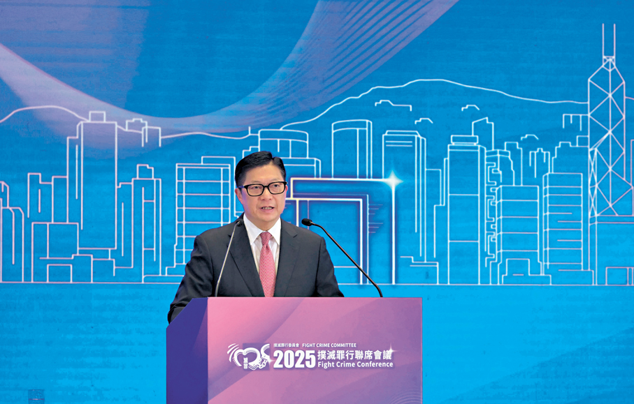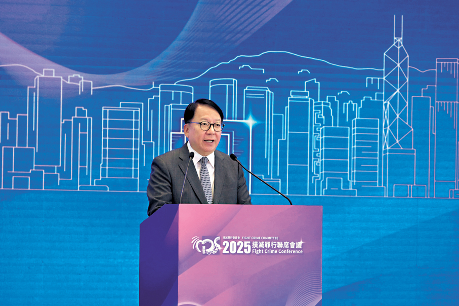 香港撲滅罪行委員會昨日在特區政府總部舉行「二○二五年撲滅罪行聯席會議」,近400名與會者就香港治安相關議題及撲滅罪行策略交流意見。行政長官李家超為會議主禮時表示,今年是香港國安法公布實施五周年,聯席會議將「推廣維護國家安全」列為主題之一,正合時宜。他強調,香港正站在邁向由治及興的關鍵節點,特區政府正全力深化改革、發展經濟、改善民生,而發展和改革的根本前提是穩定。只有築牢國家安全屏障,香港才能在穩固的根基上,有效應對各種風險和挑戰。