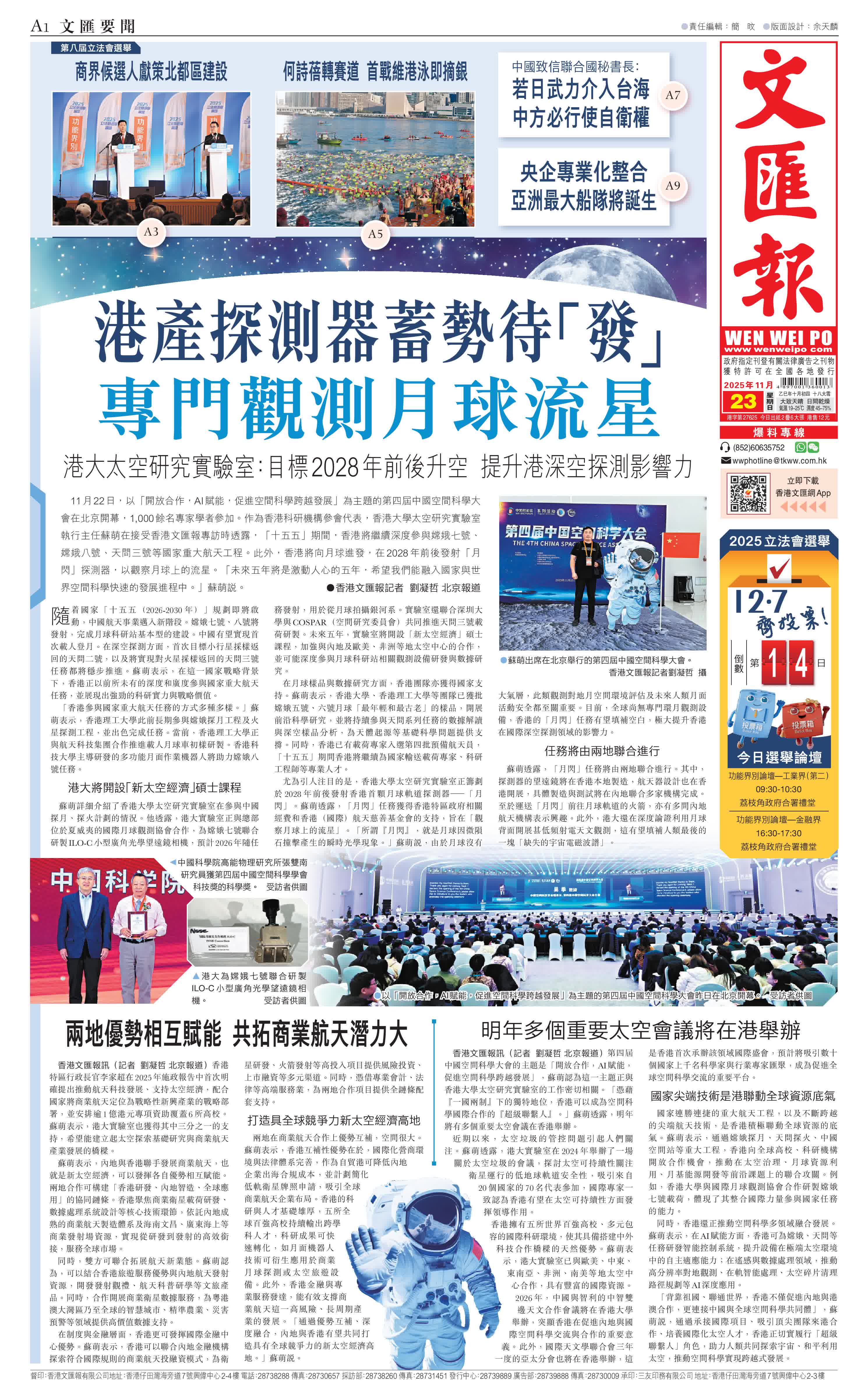 「背靠祖國、聯通世界,香港不僅促進內地與港澳合作,更連接中國與全球空間科學共同體」,蘇萌說,通過承接國際項目、吸引頂尖團隊來港合作、培養國際化太空人才,香港正切實履行「超級聯繫人」角色,助力人類共同探索宇宙、和平利用太空,推動空間科學實現跨越式發展。